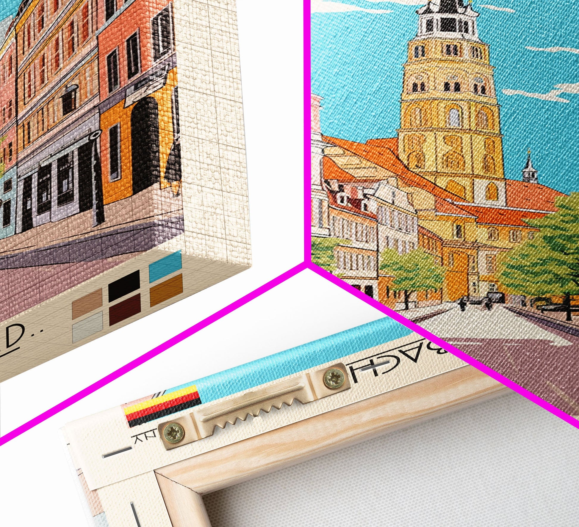 Mönchengladbach Germany Travel Poster Framed Canvas Print, Midcentury Modern Art, Pop Art Wall Decor, Scenic Living Room Art, Bedroom Gift