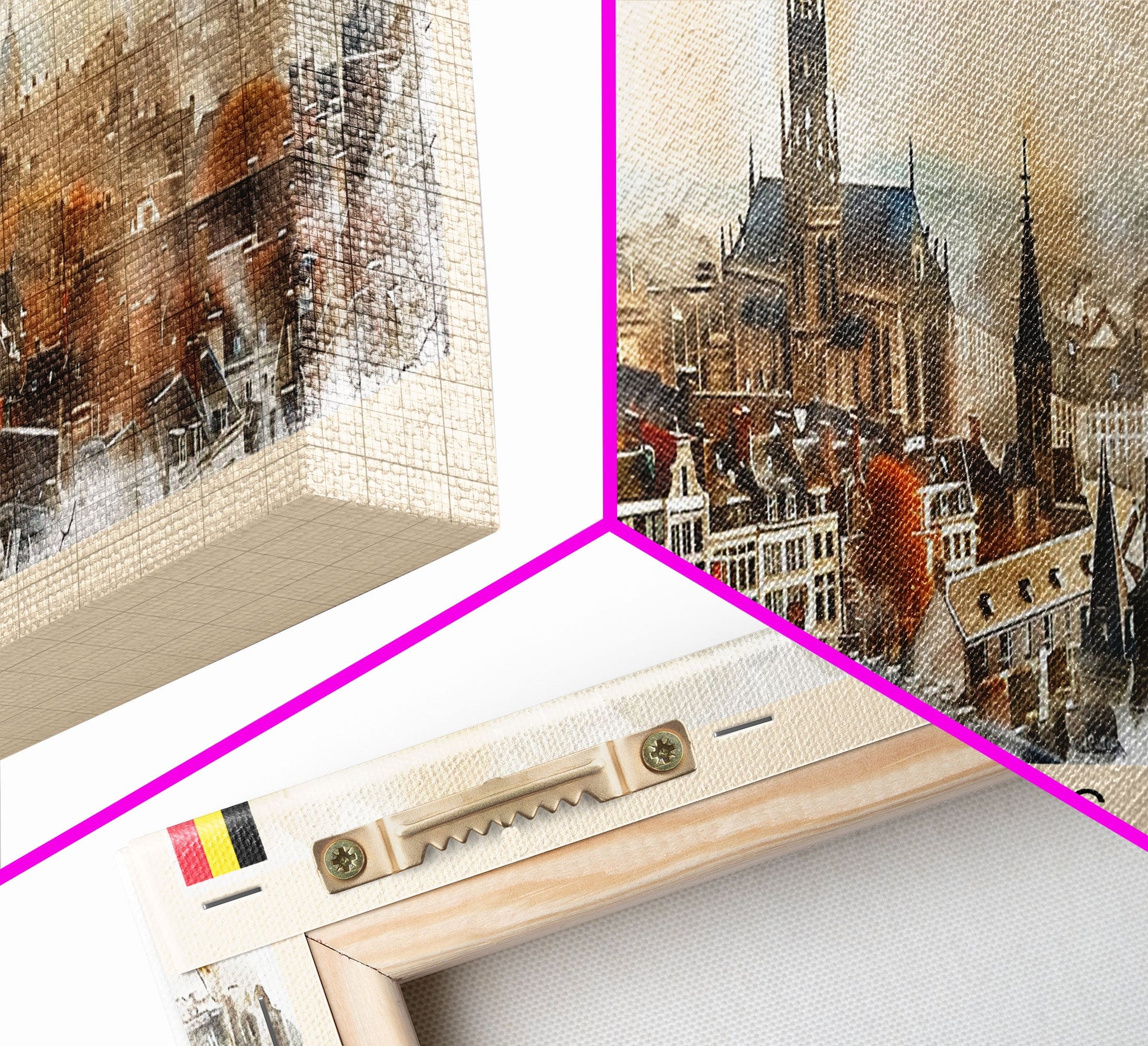 Mons Belgium Panoramic Travel Poster, Framed Canvas Print or Metal Wall Art, Travel Art, Home Decor, Panoramic Painting, Midcentury Art