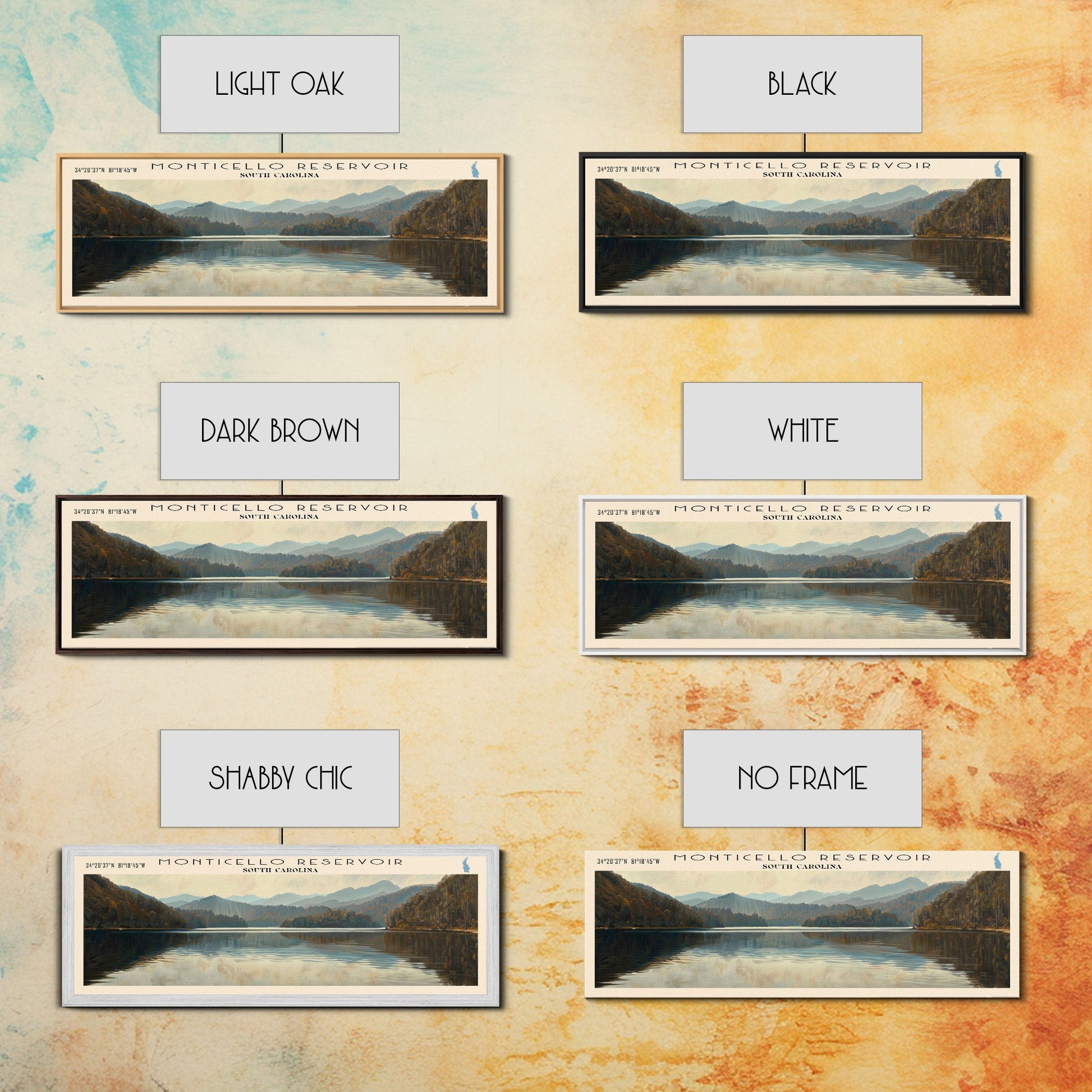 Monticello Reservoir South Carolina Framed Canvas Print, Lake House Decor, Panoramic Wall Art, Travel Poster, Scenic Landscape Painting, Contemporary Art