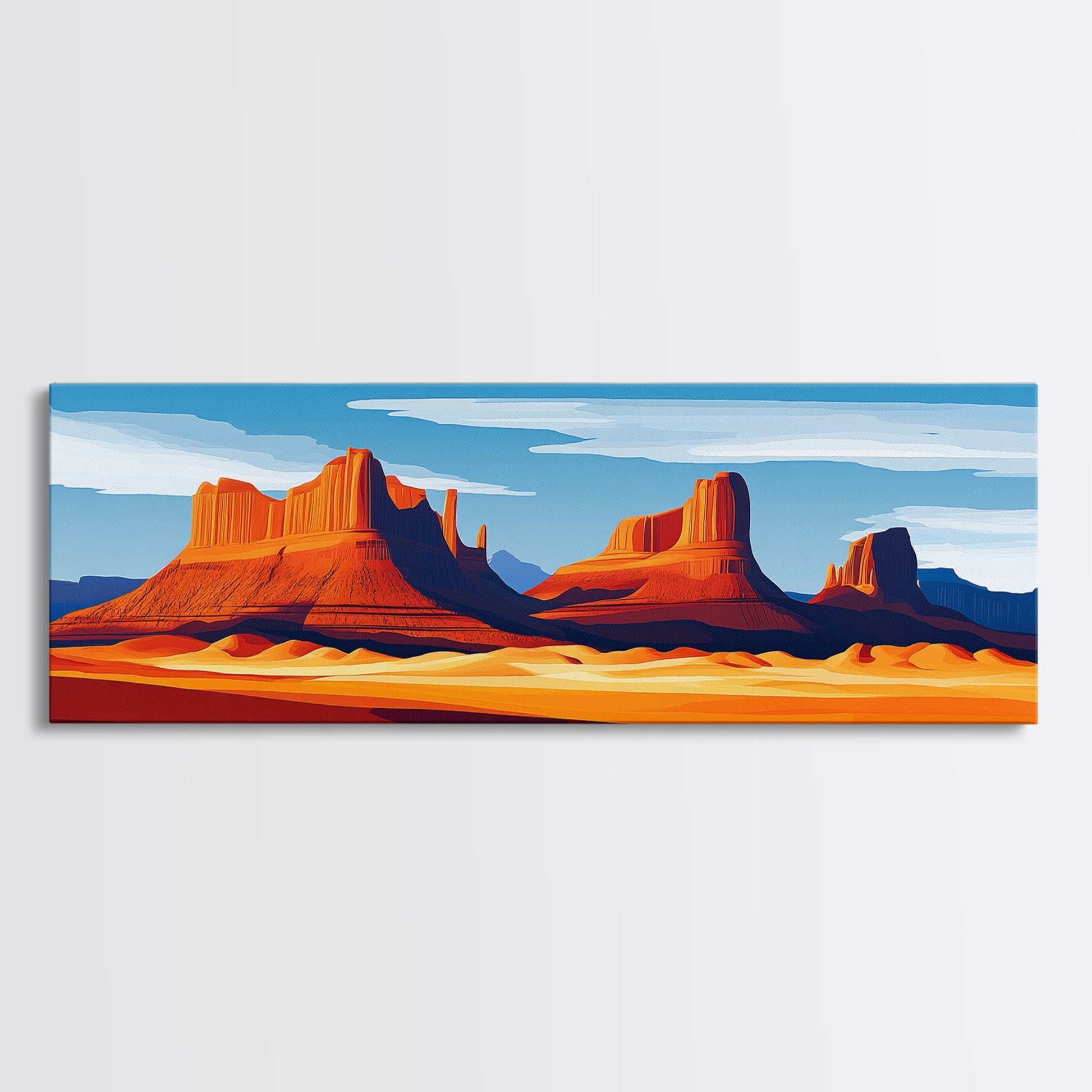 Monument Valley Sunset Framed Canvas Print, Southwest Wall Art, Panoramic Painting, Rustic Art, Landscape Art, Gift Idea, Extra Wide Art