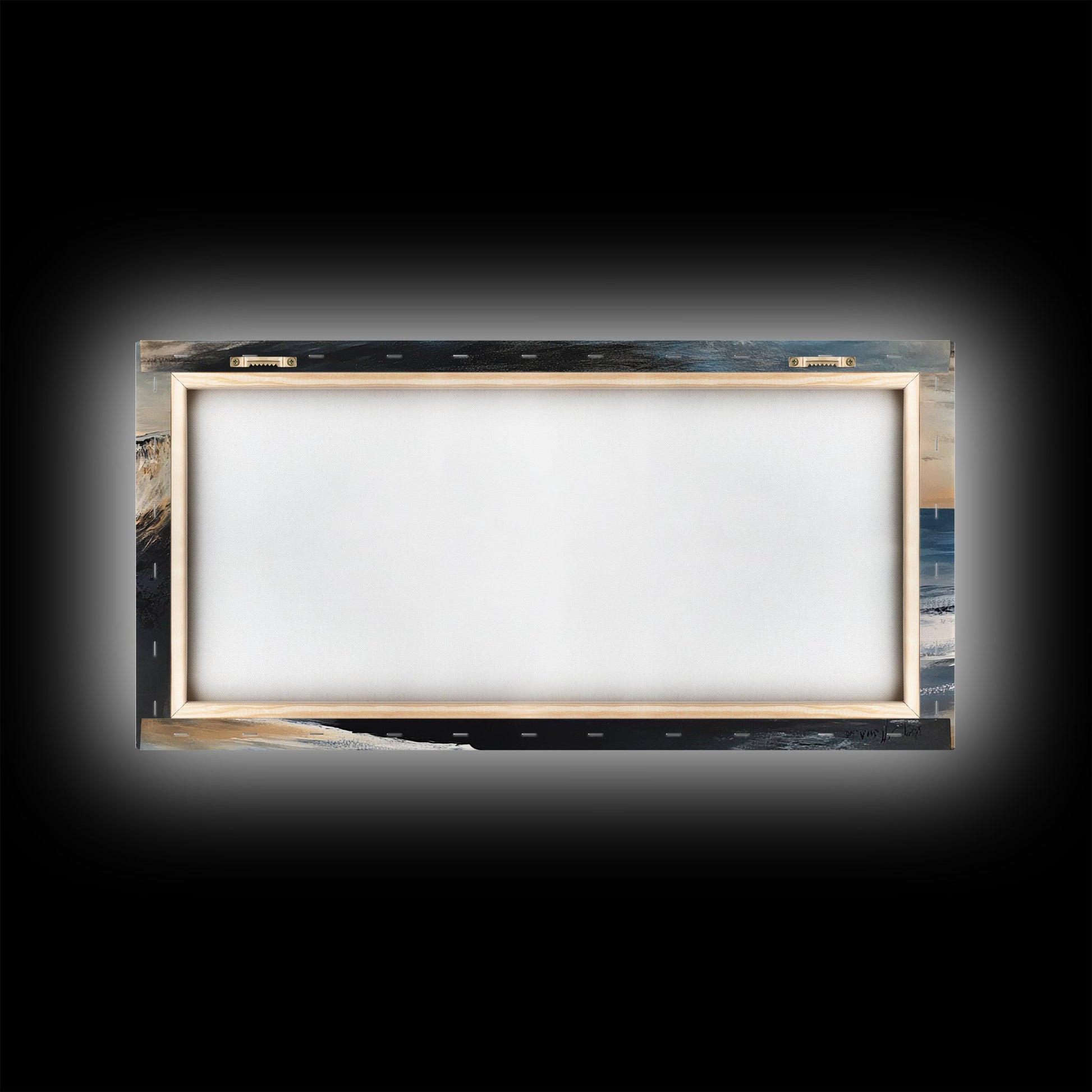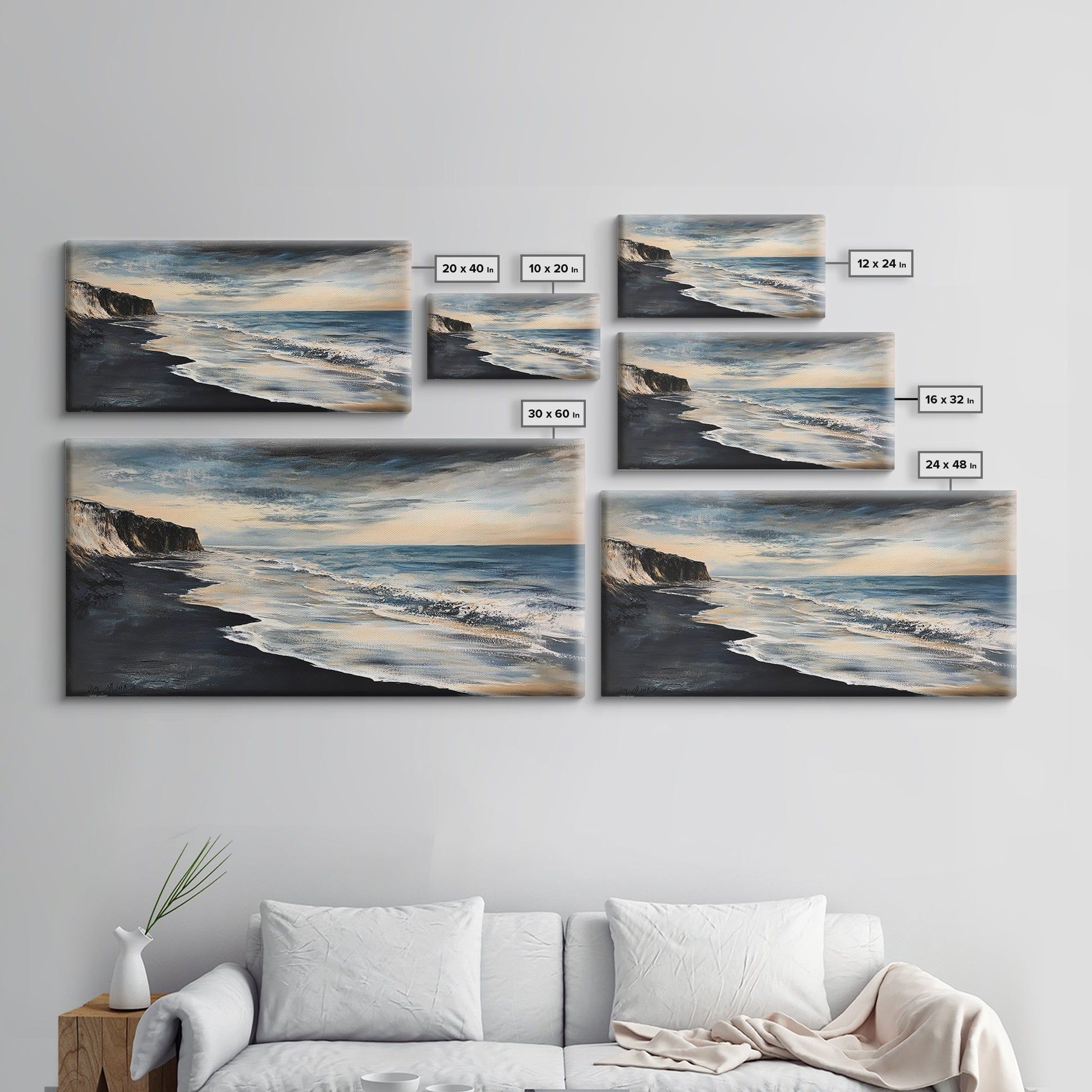 Moody beach, dark ocean, seascape painting, panoramic art, extra wide art, nautical painting, framed canvas print, above sofa art