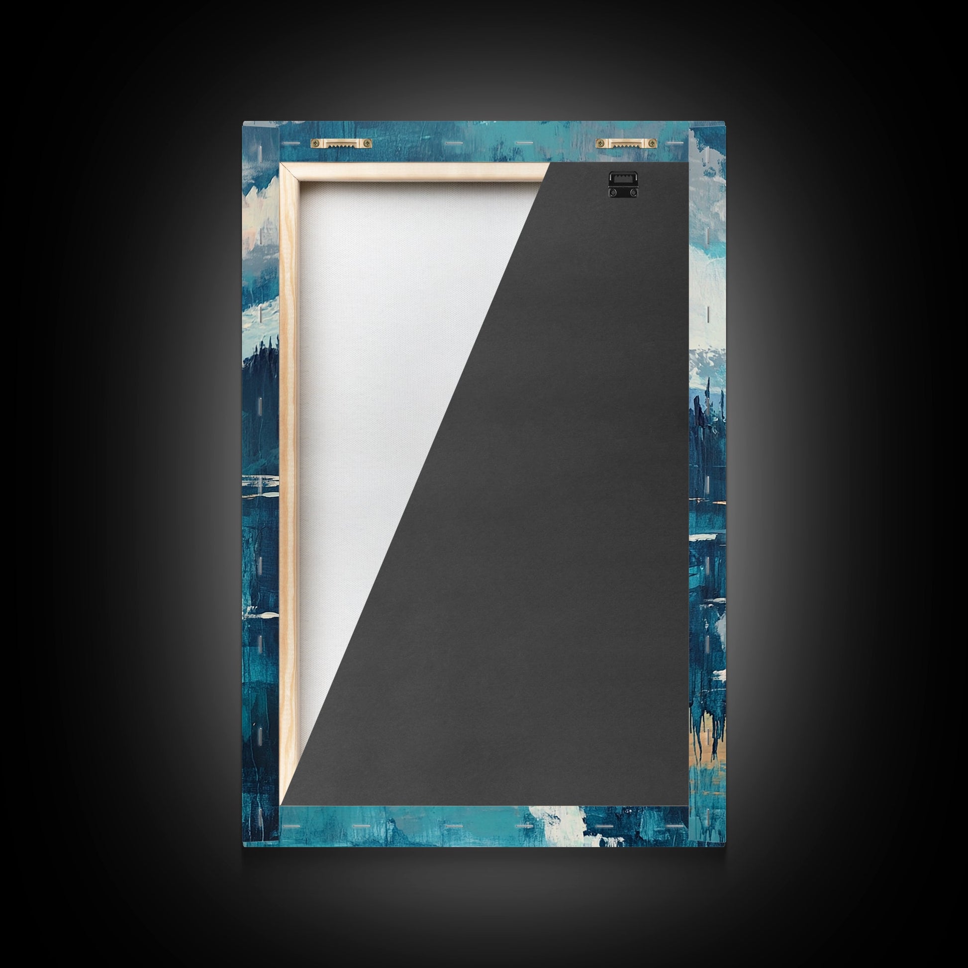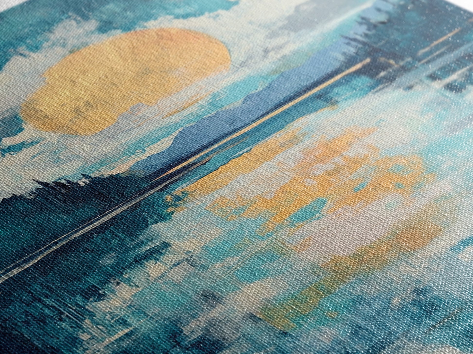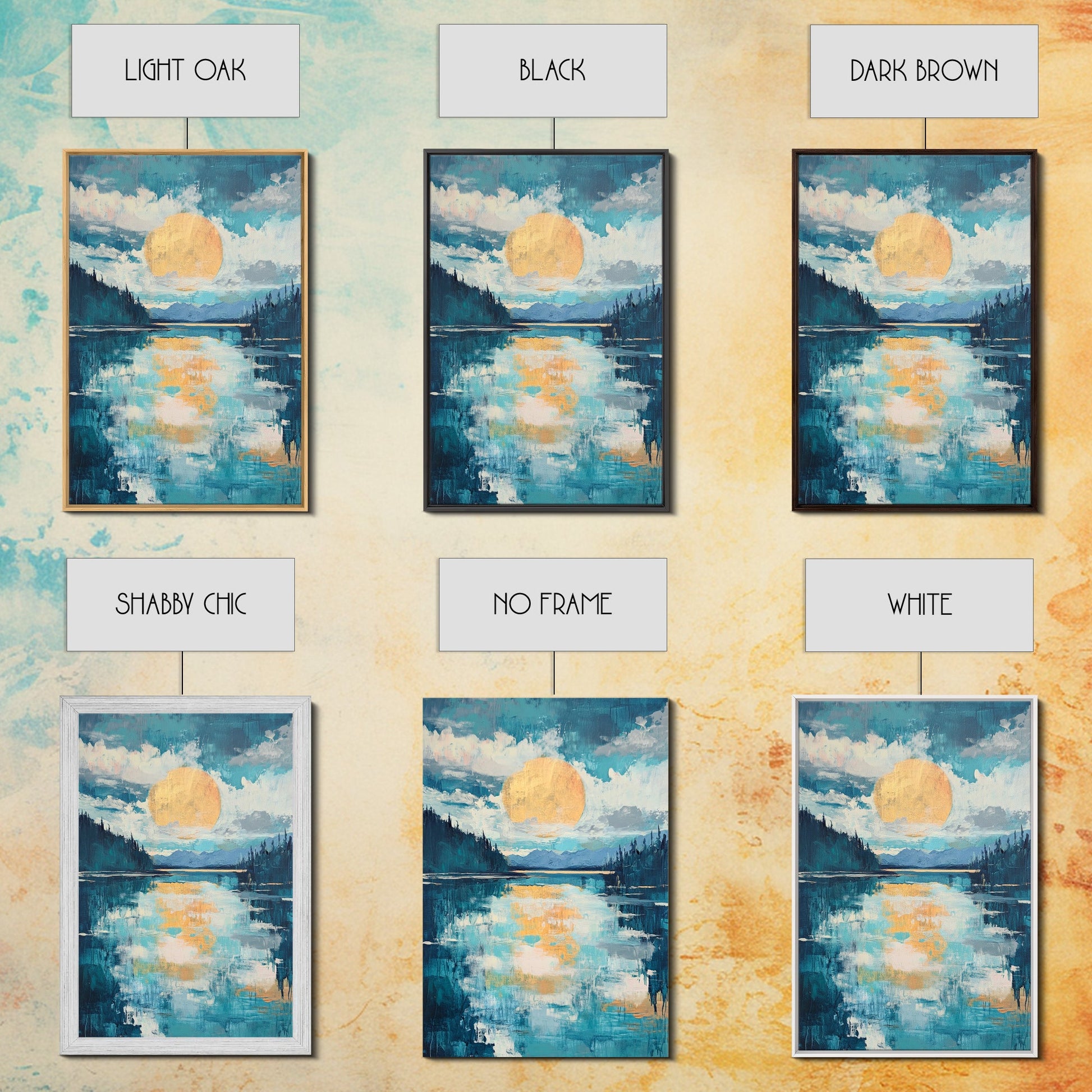 Moon Oil Painting, Smoky Mountain Art, Wabi Sabi Wall Art, Framed Canvas Print, Moody Art, Blue and Green Wall Art, Above Sofa Art