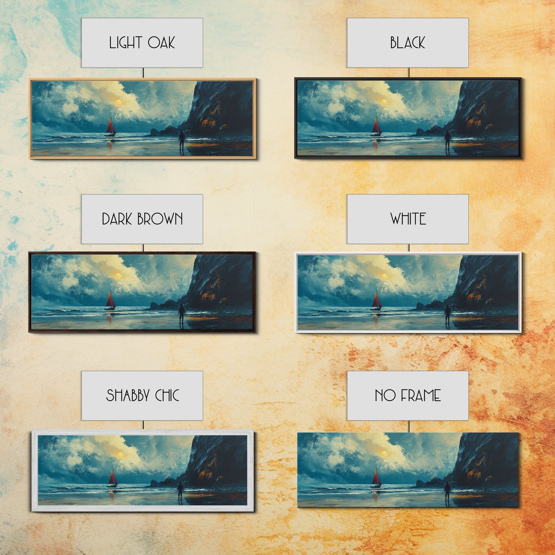Moonlit Sailboat Canvas Print Dramatic Ocean Wall Art, Coastal Nautical Painting, Dark Blue Seascape, Moody Living Room Decor