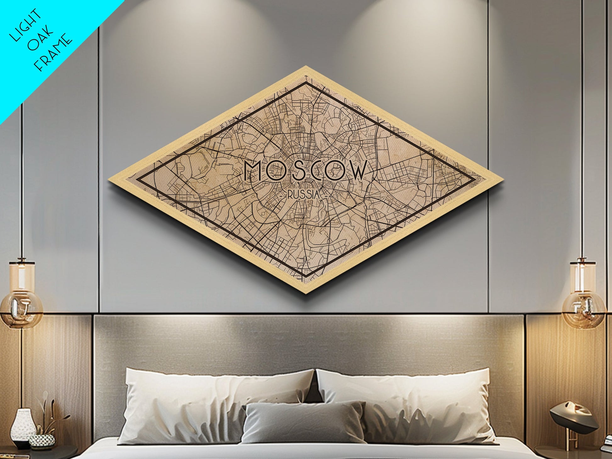 Moscow - Russia Diamond Shaped City Map, Custom Diamond Shaped Wall Art, City Map Canvas