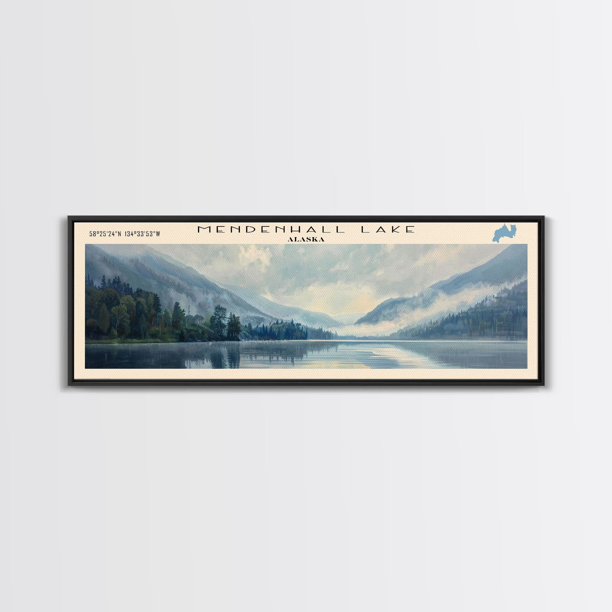 Mosquito Lake Framed Canvas Print, Lake House Decor, Panoramic Wall Art, Travel Poster, Scenic Landscape Painting, Living Room Decor