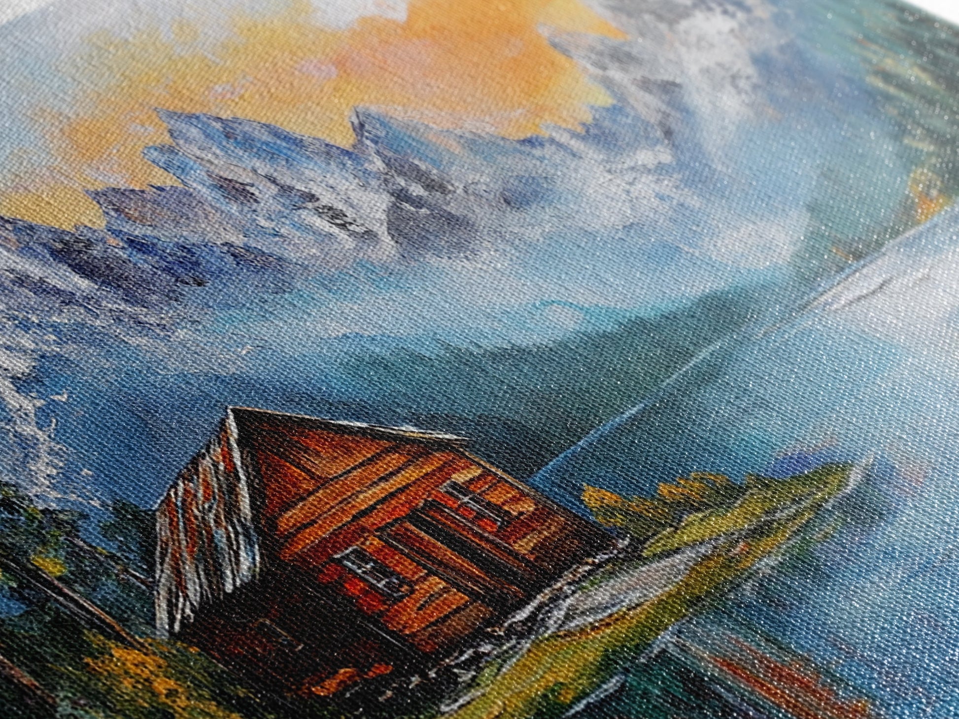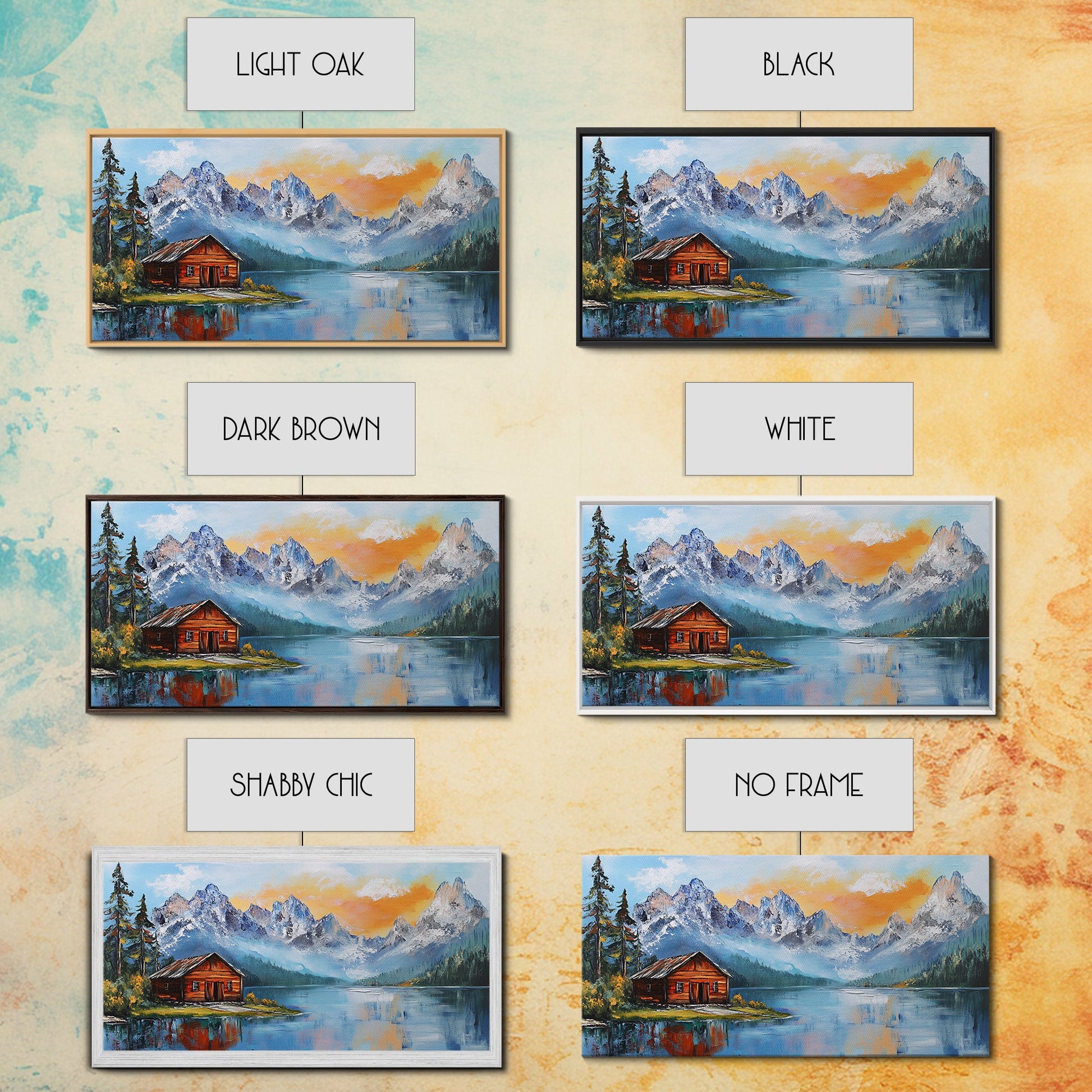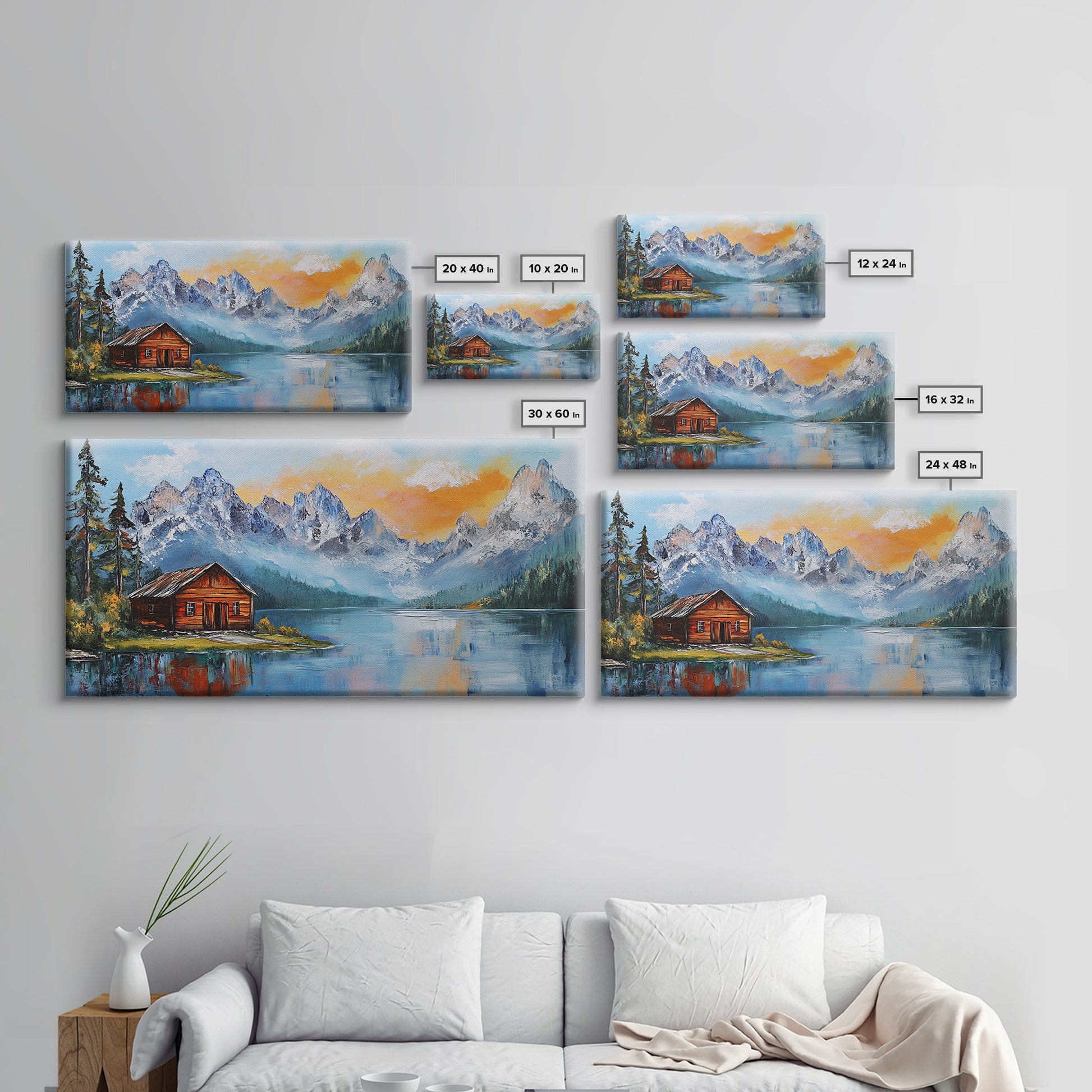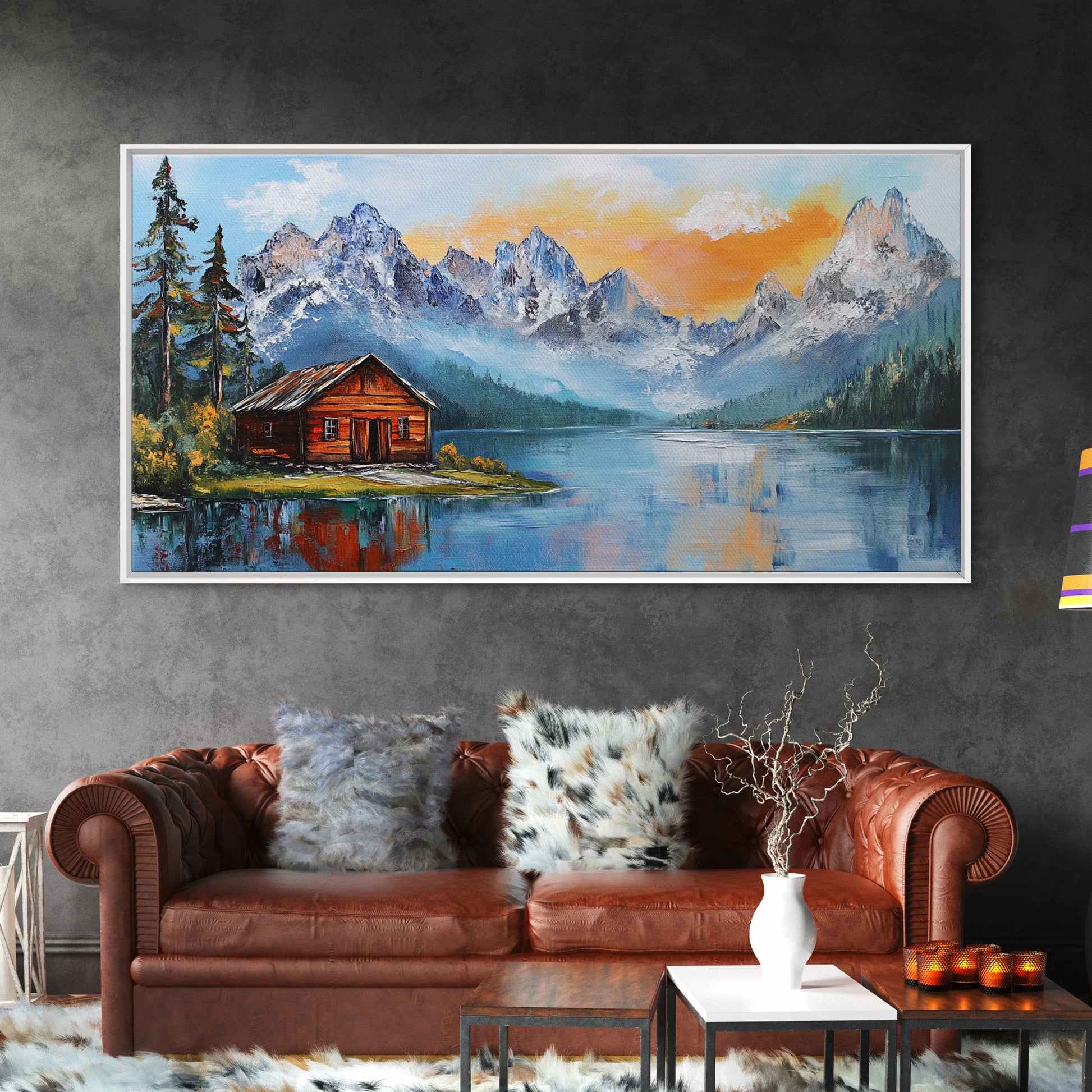 Mountain Cabin, Rustic Art, Lake Tahoe Art, Above Sofa Art, Landscape Painting, Bedroom Art, Framed Canvas Print, Farmhouse Art