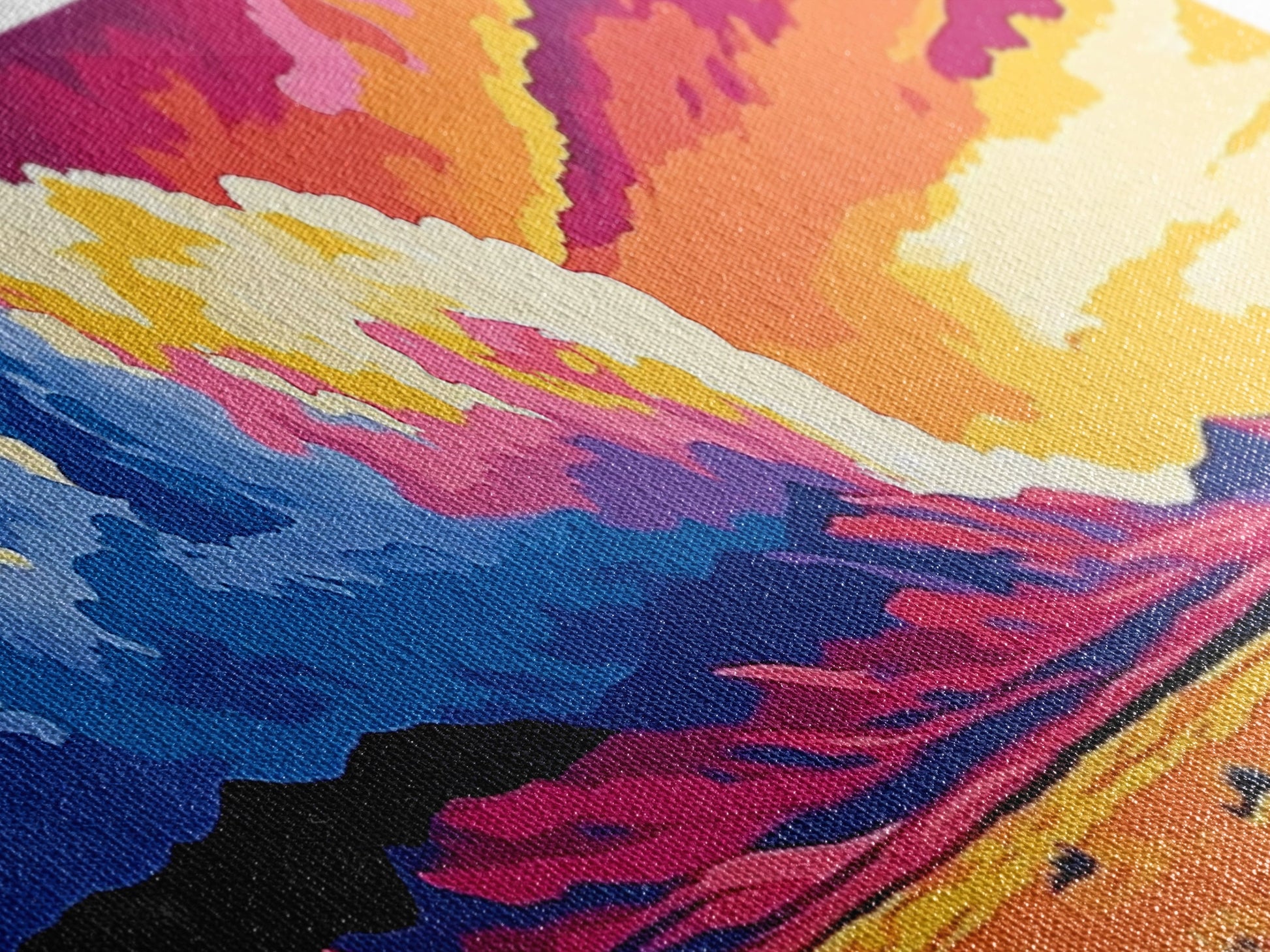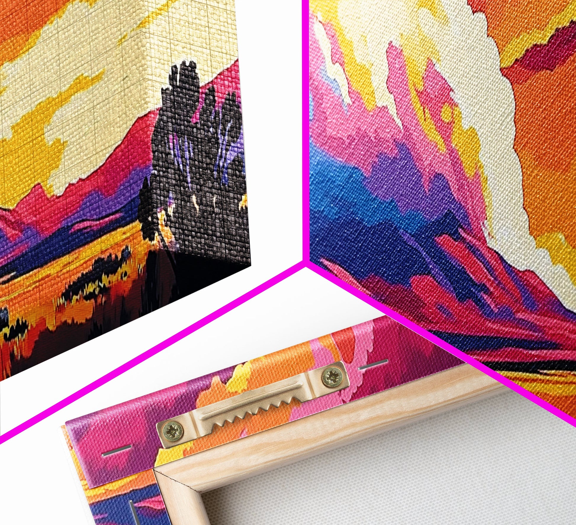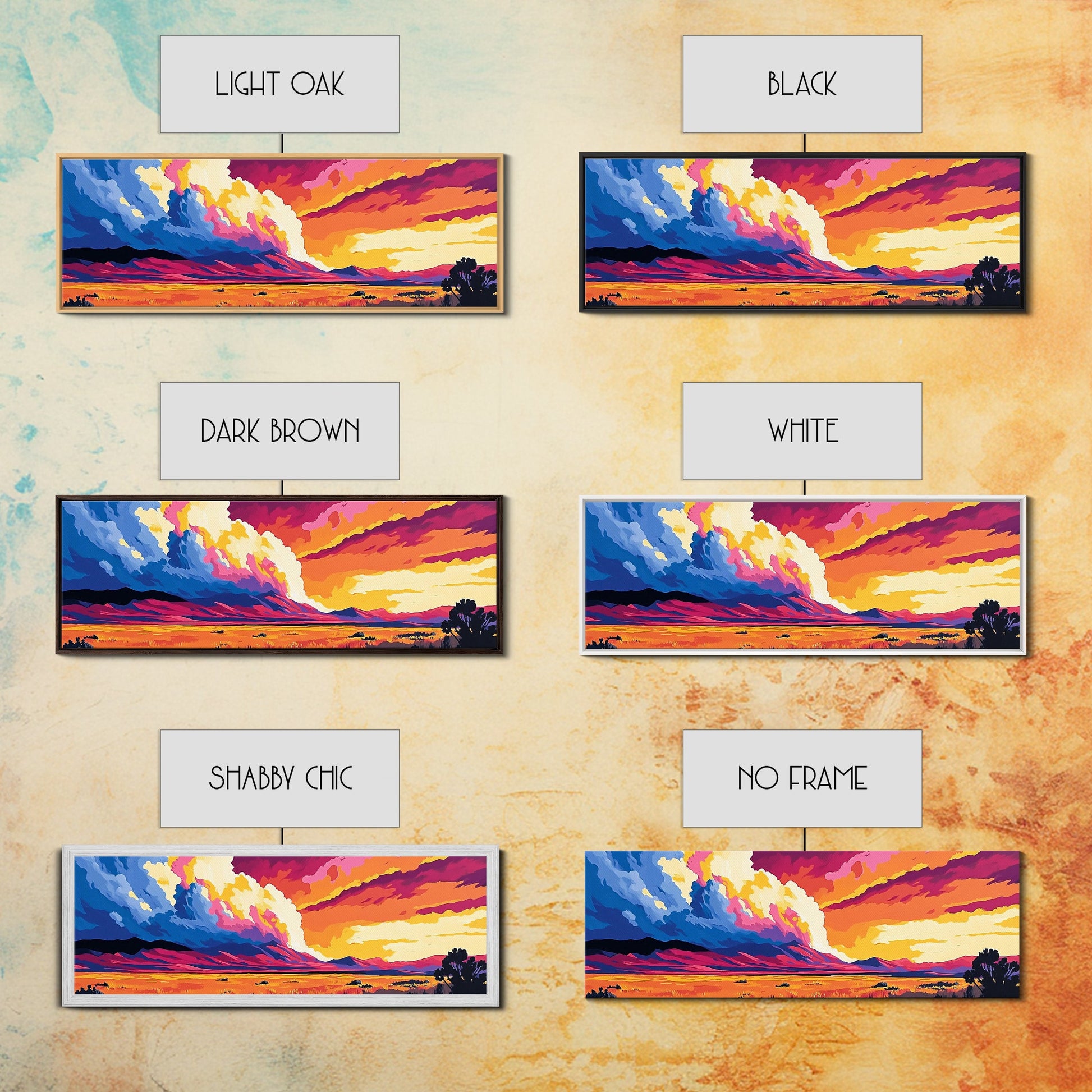 Mountain Clouds, colorful sunset, nature scenery, abstract sky painting, vibrant home decor, Office Wall Art, Framed Canvas Print