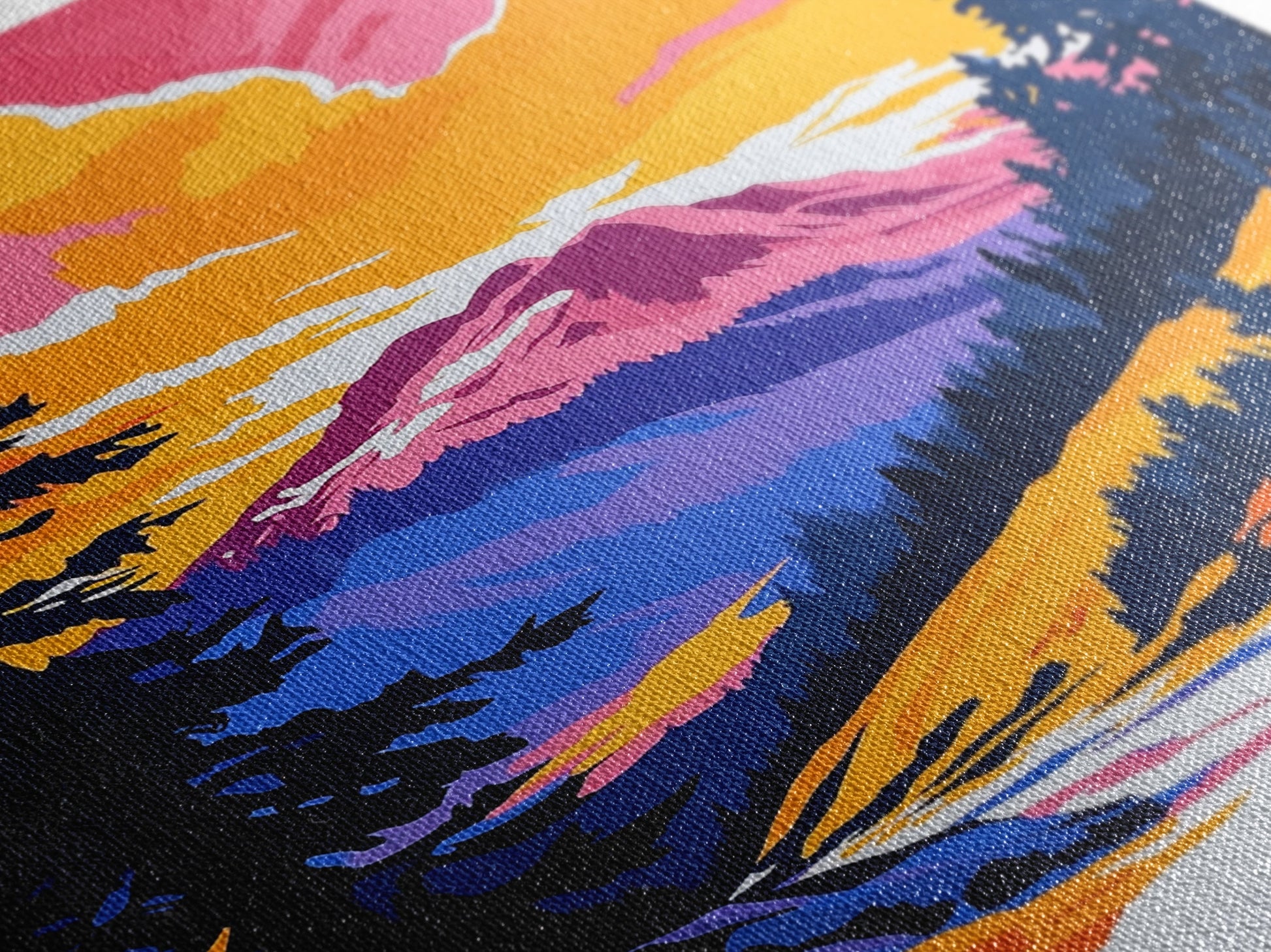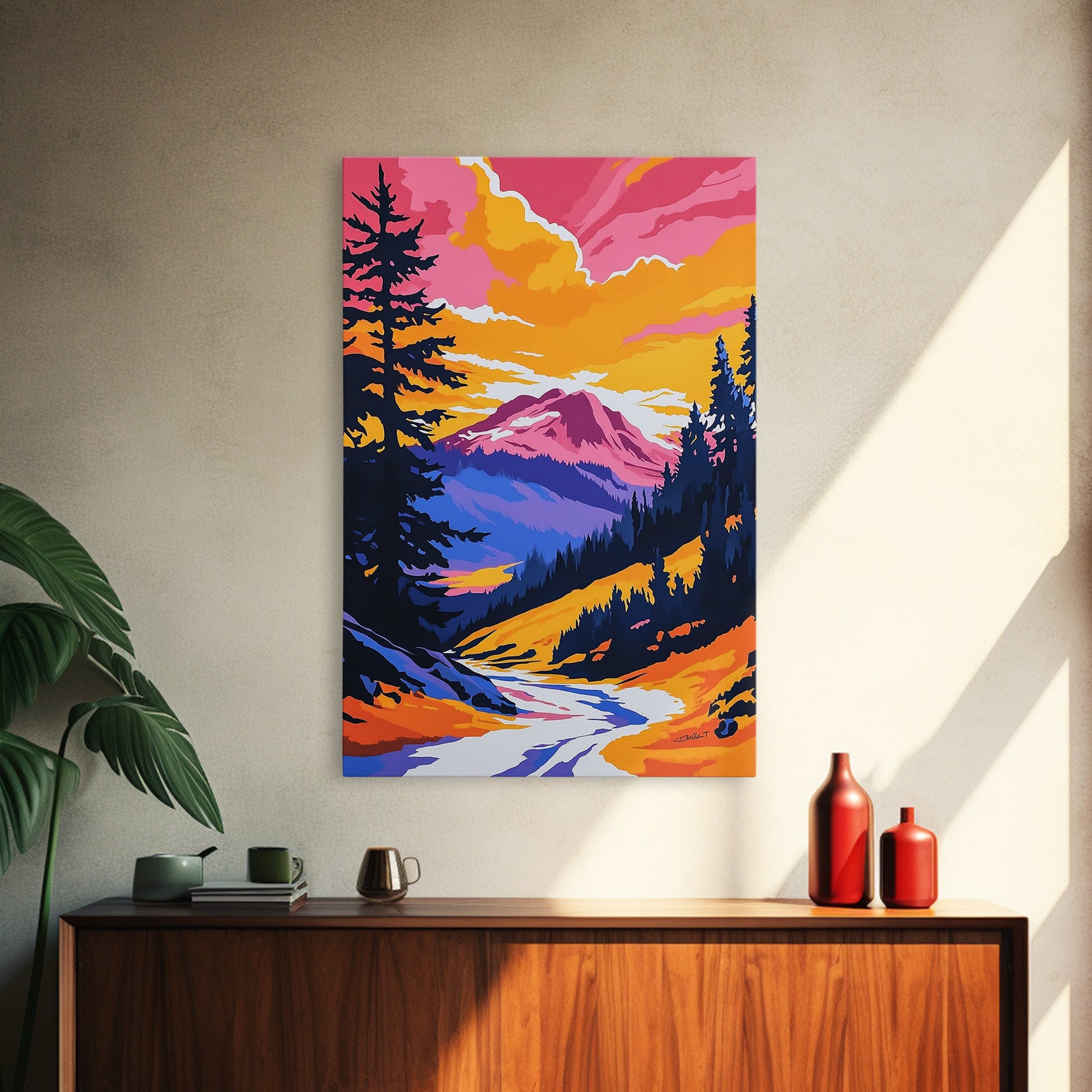 Mountain View Art, Nature Painting, Colorful Scenic Decor, Alpine Sunset, Wilderness Print, Framed Canvas Print, Office Wall Art