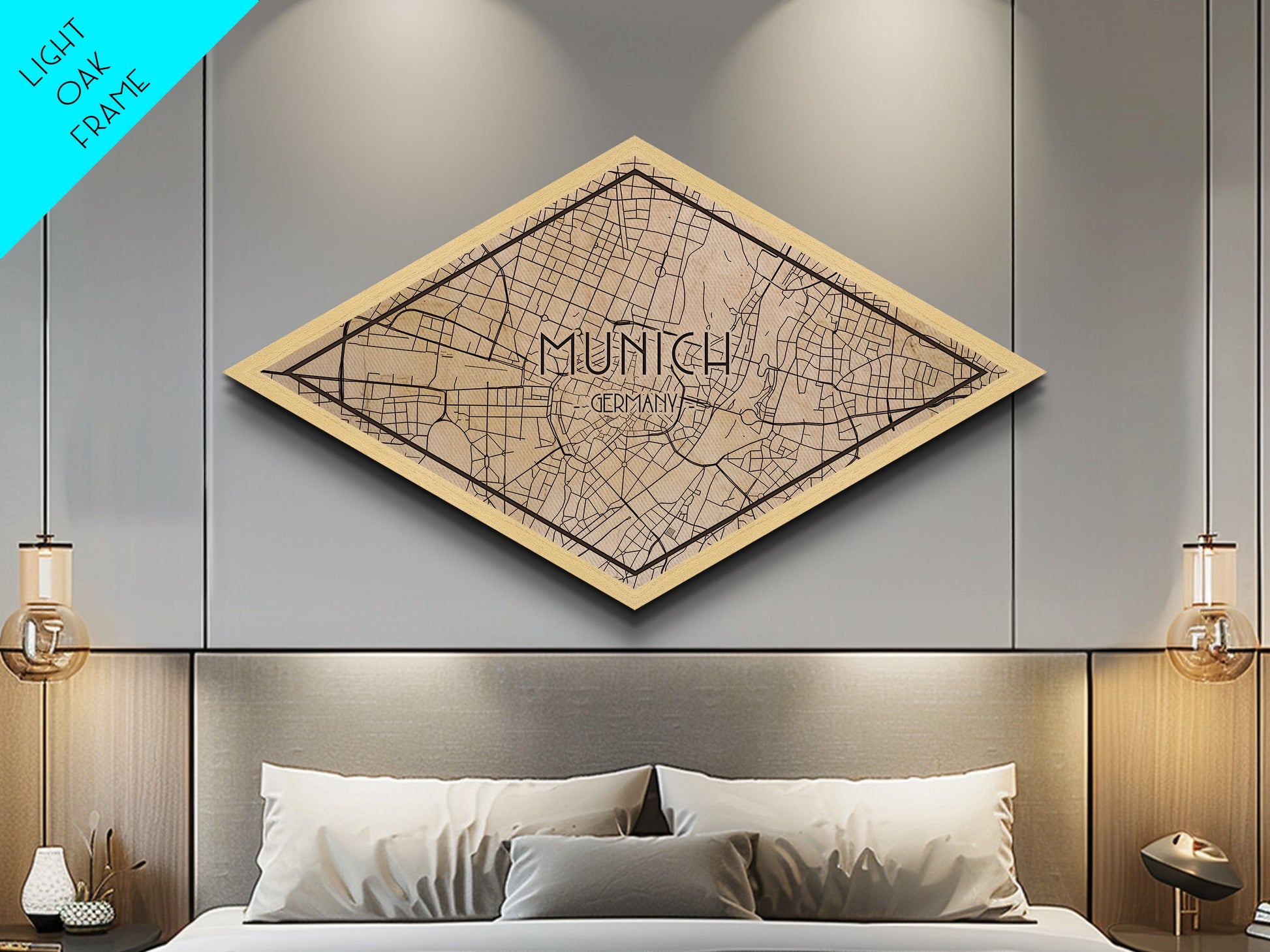 Munich - Germany Diamond Shaped City Map, Custom Diamond Shaped Wall Art, City Map Canvas
