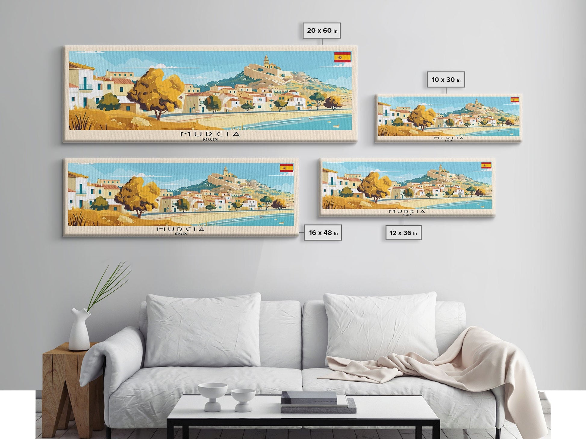 Murcia Spain Travel Art, City Art, Framed Canvas Print or Metal Wall Art, Europe Travel Poster, Panoramic Wall Art, Extra Wide Wall Art