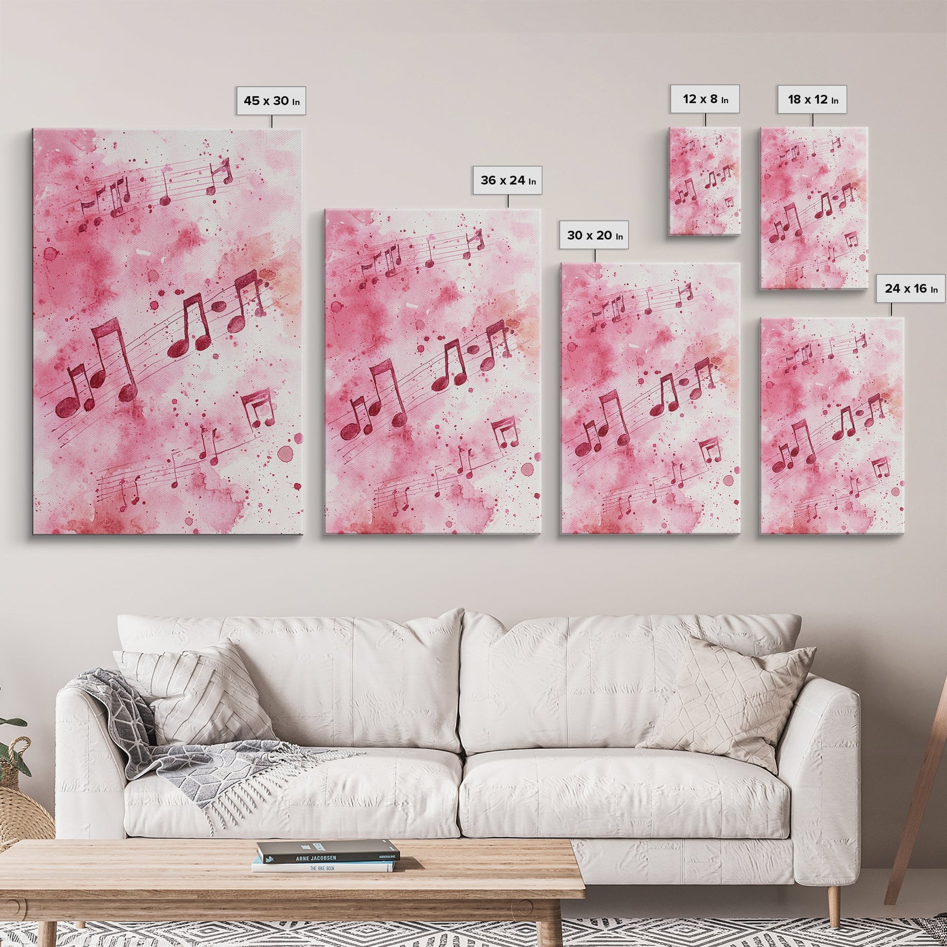 Musical Notes Canvas Print, Pink Abstract Watercolor Art, Music Lovers Gift, Therapy Wall Art, Light Pink Bedroom Living Room Decor