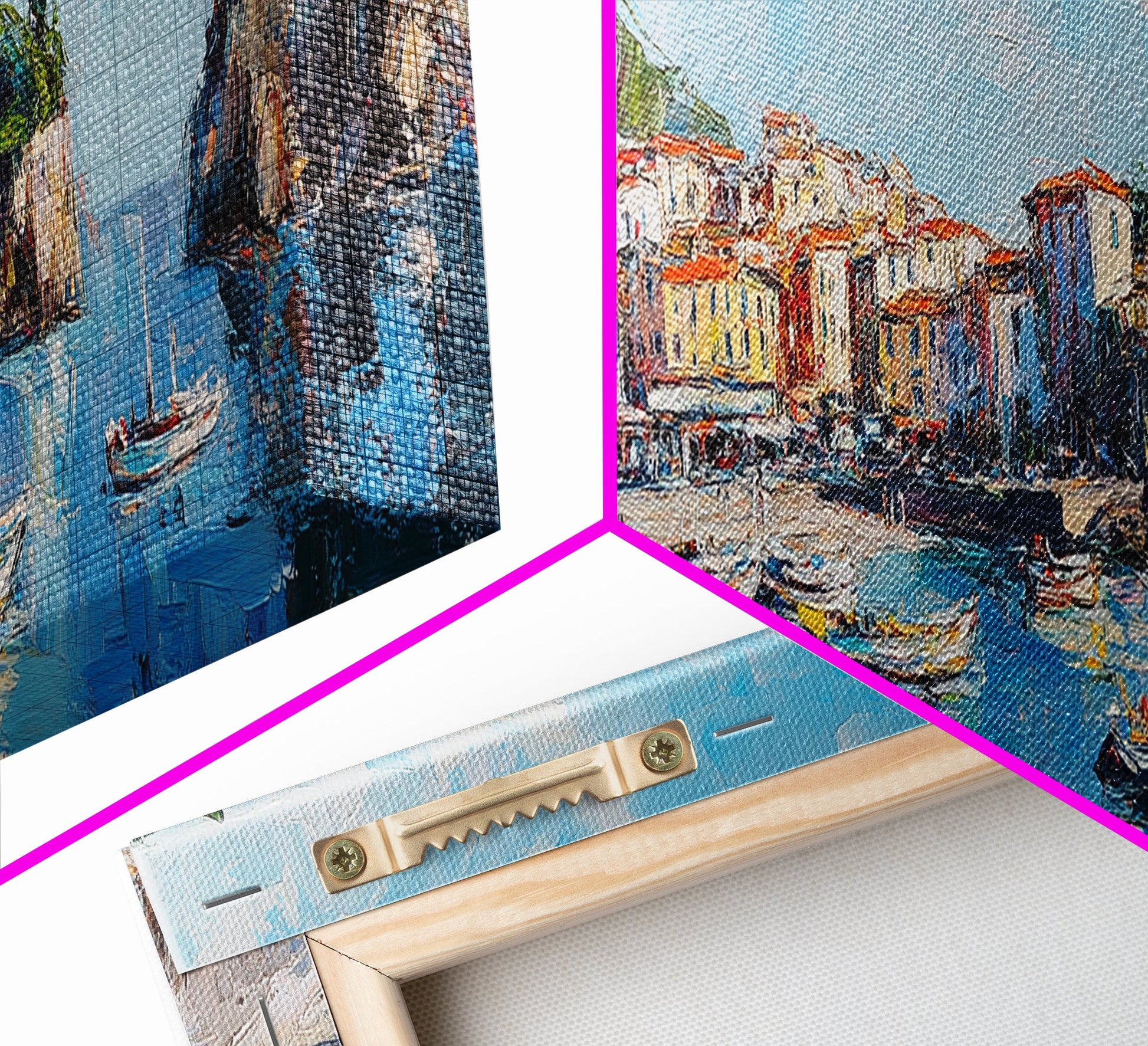Muted Italian Fishing Village Painting Print, Boho Wall Art, Minimalist Style Panoramic Painting, Extra Large Oversized Wall Art, Home Decor / Gift Idea