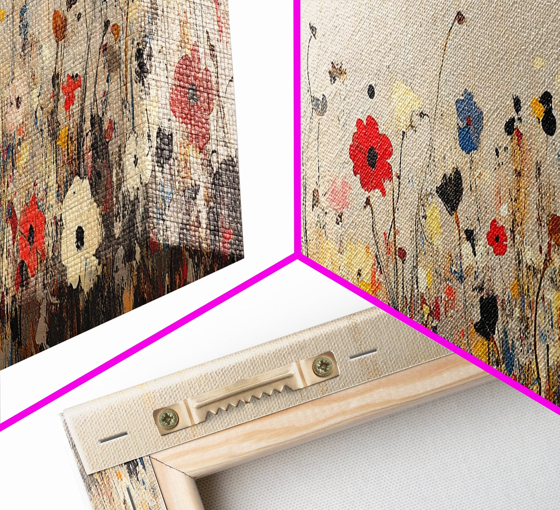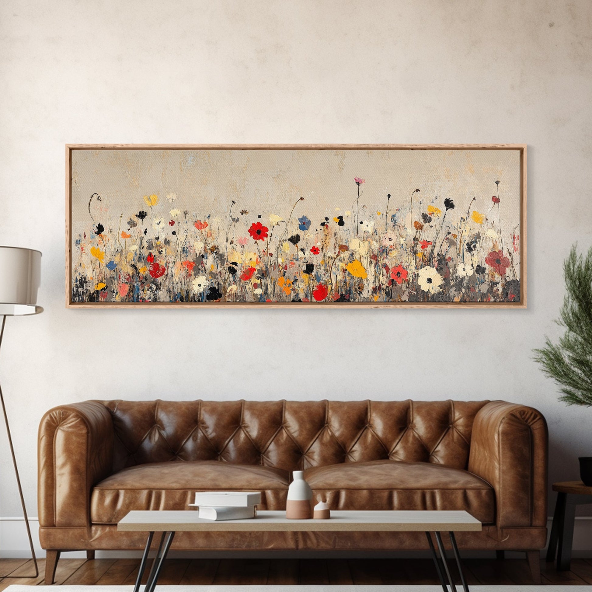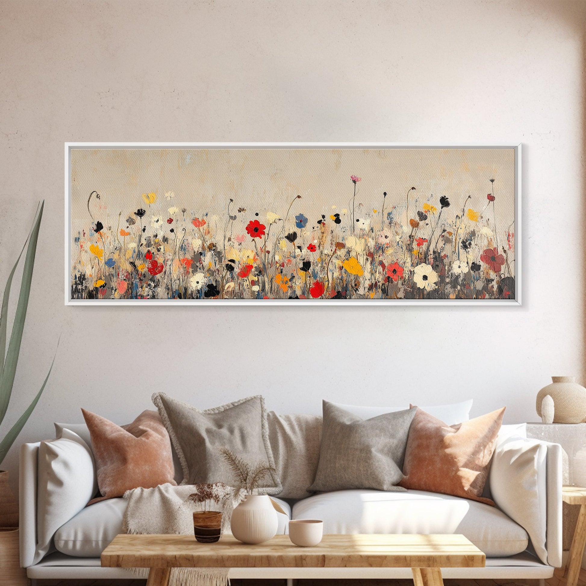 Muted Wild Flowers On White Background, Framed Canvas Print, Mother's Day Gift Idea, Wood Frame, Rustic Art, Farmhouse Decor, Boho Art