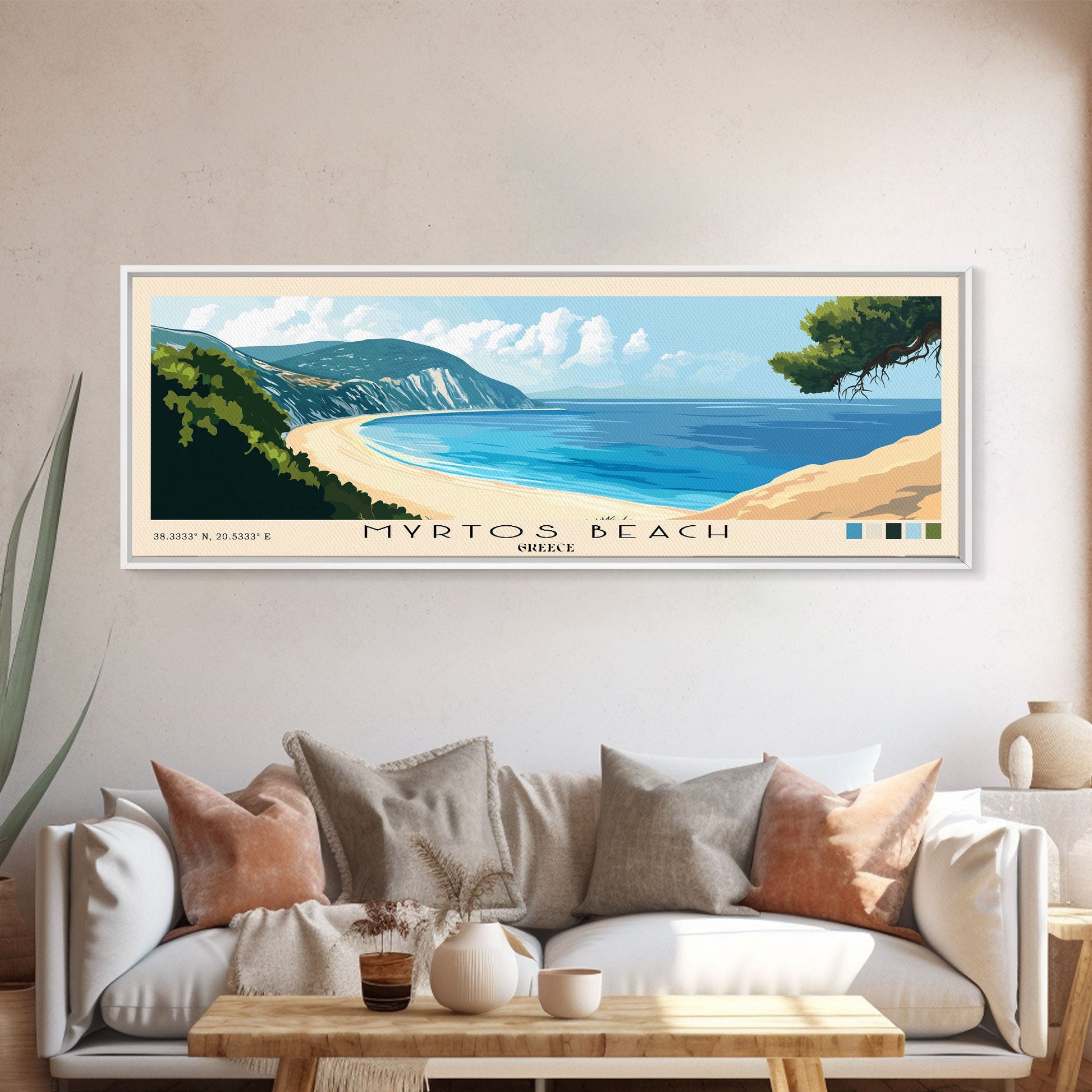 Myrtos Beach, Greece Panoramic Print, Vacation Gift, Greece Wall Art, Beach Painting, Beach Decor, Beach Or Lakehouse Art