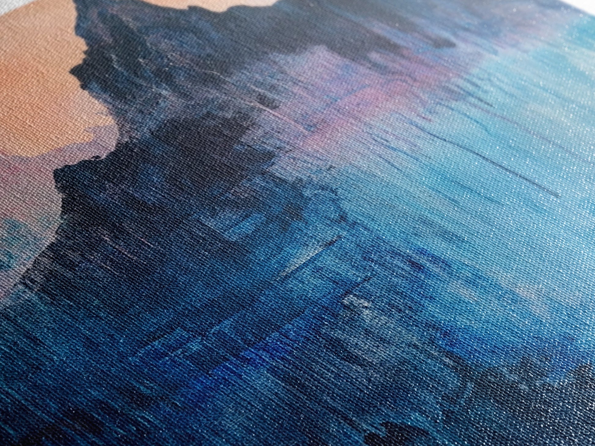 Most of our canvases are made in the USA, with the exception of canvases ordered with the light oak unstained frames, and any large canvases (24x48, 30x60, 16x48 and 20x60) ordered WITH a frame. These are temporarily made in and shipped from Europe, while we try to find a more consistent supplier in the USA.