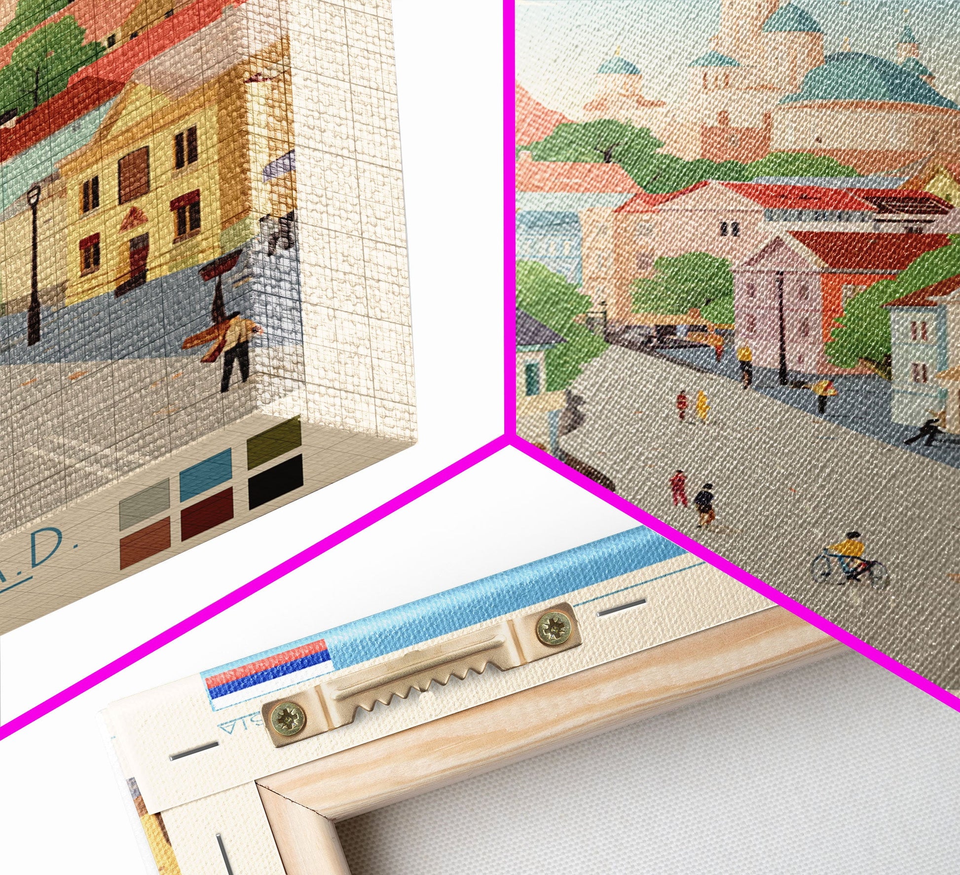 Nalchik Russia Travel Poster Framed Canvas Print, Midcentury Modern Art, Pop Art Wall Decor, Home Decor, Vacation Gift, Bedroom Art