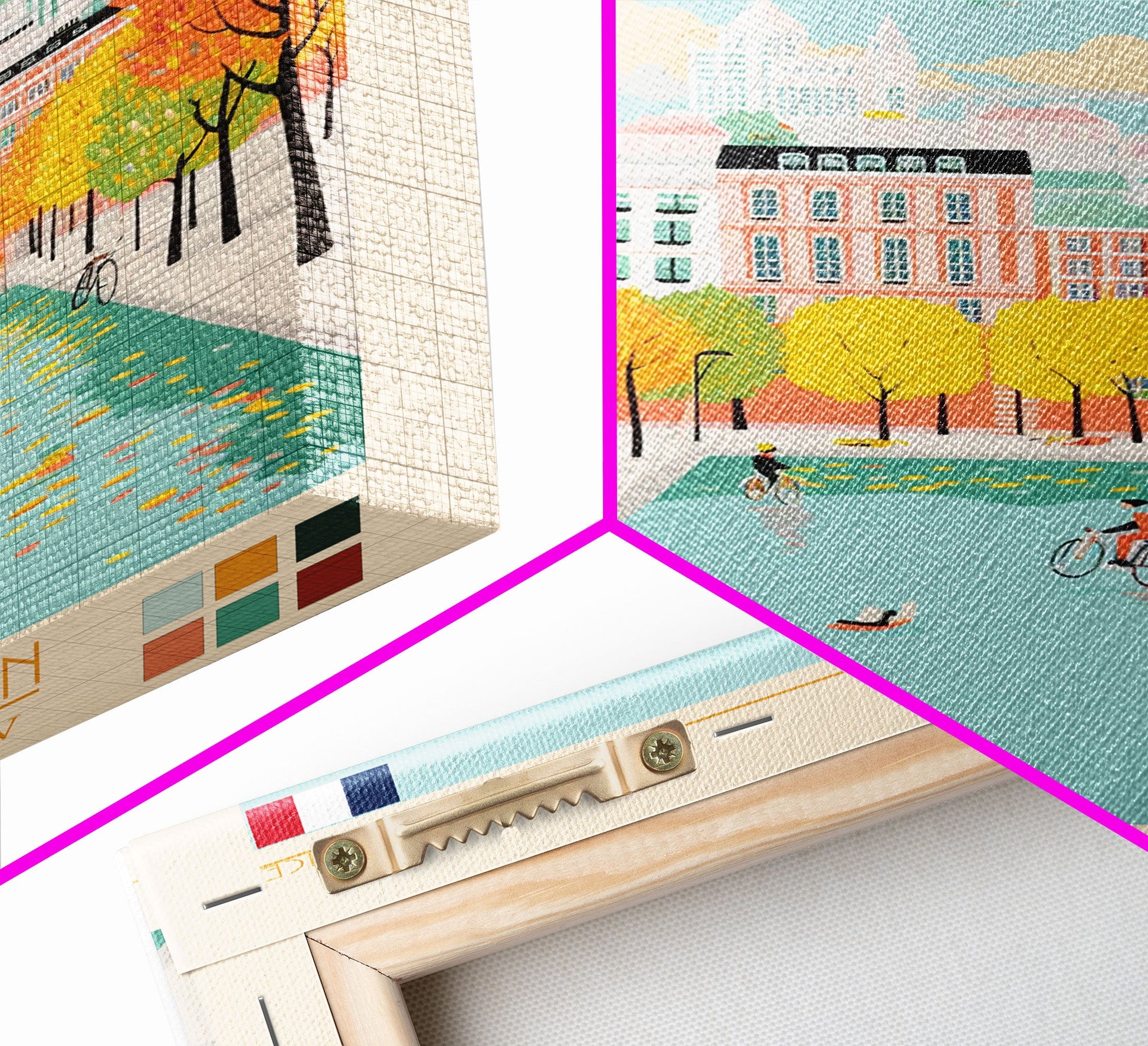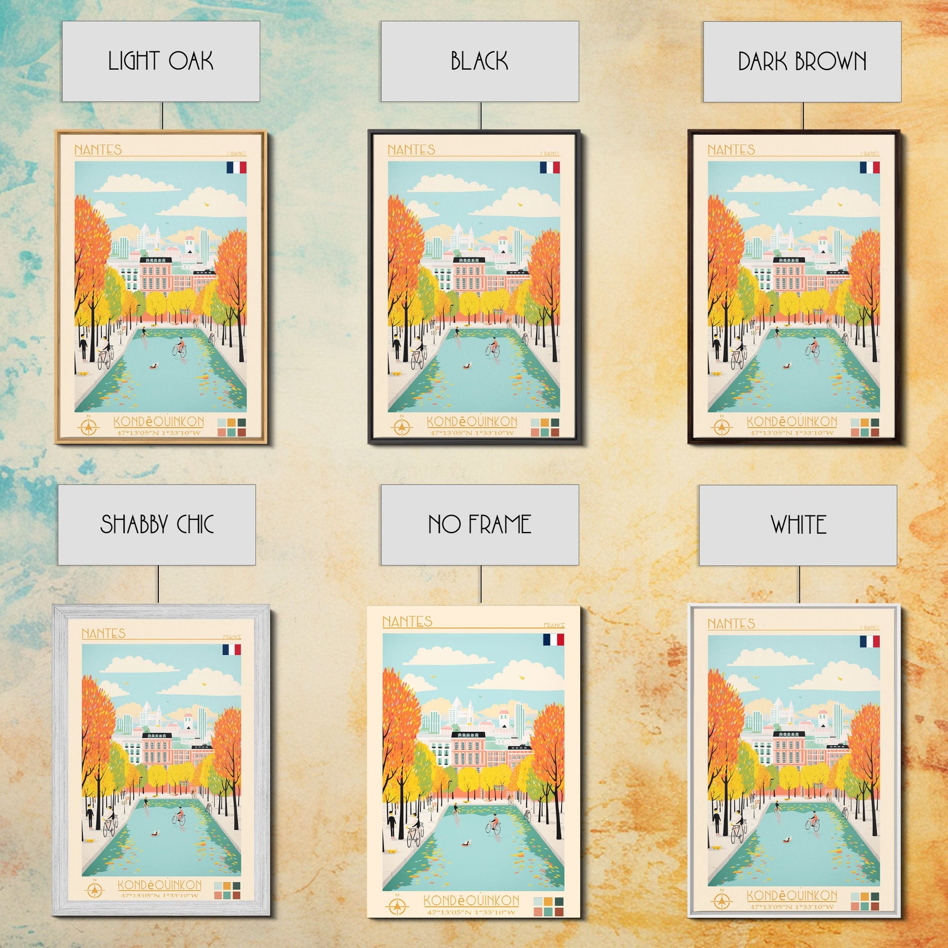 Nantes France Travel Poster Framed Canvas Print, Midcentury Modern Art, Pop Art Wall Decor, Scenic Wall Art, Bedroom Decoration