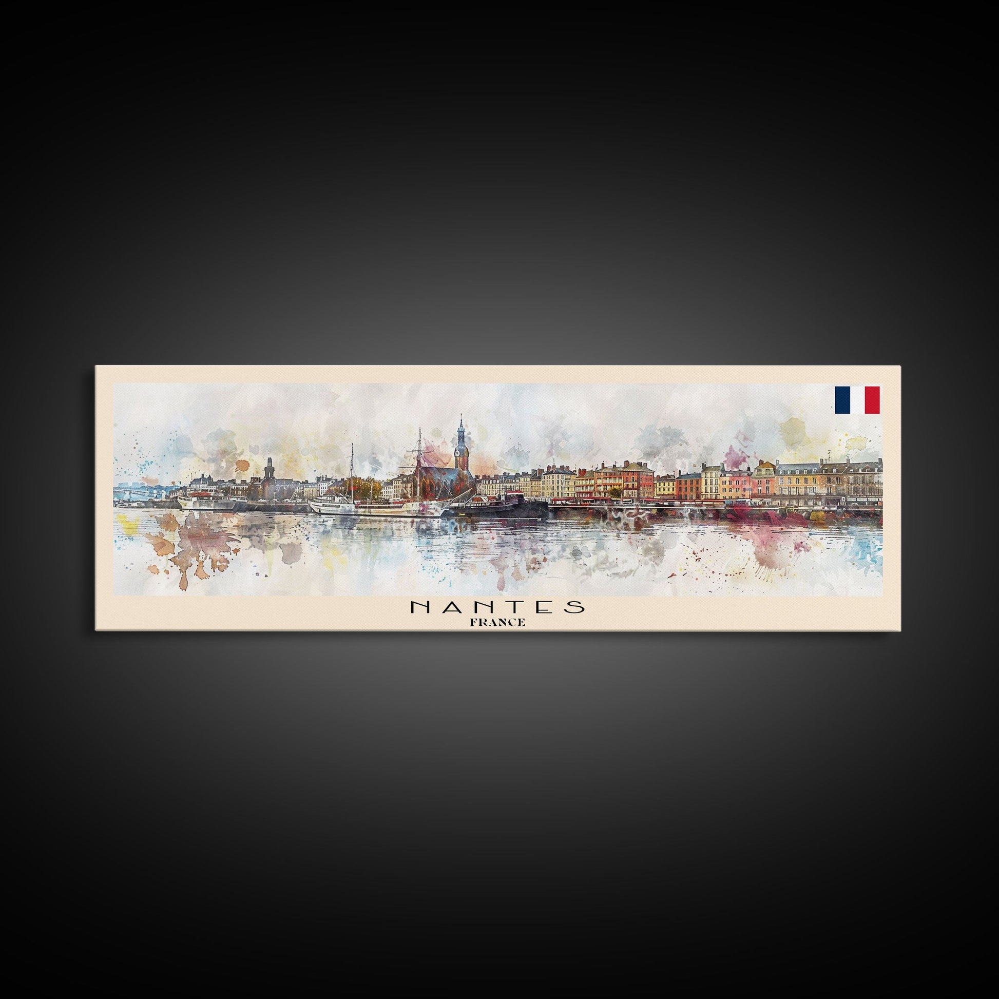 Nantes France Travel Print Wall Art, Panoramic City Art, Travel Art, Wall Decor, Vacation Gift, Framed Canvas Print Or Metal Art