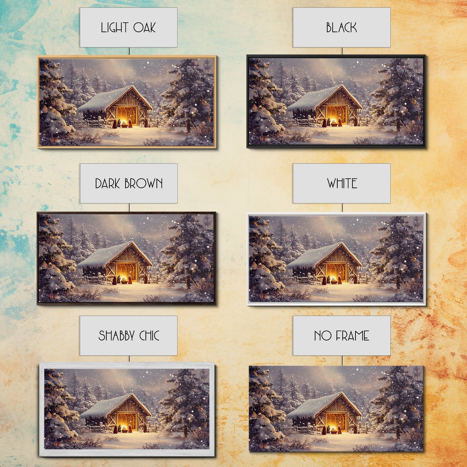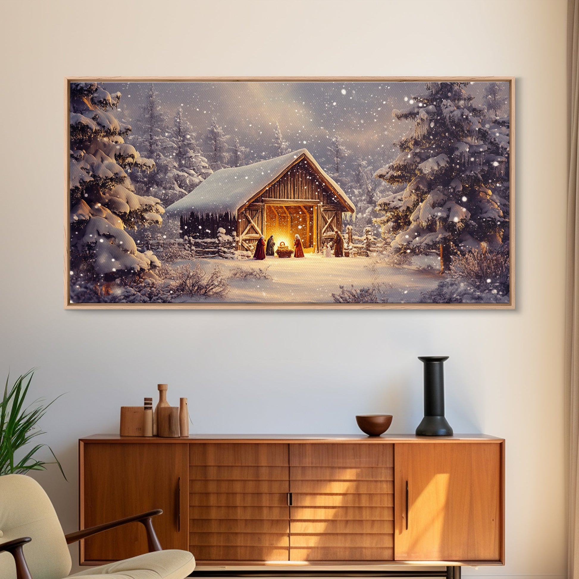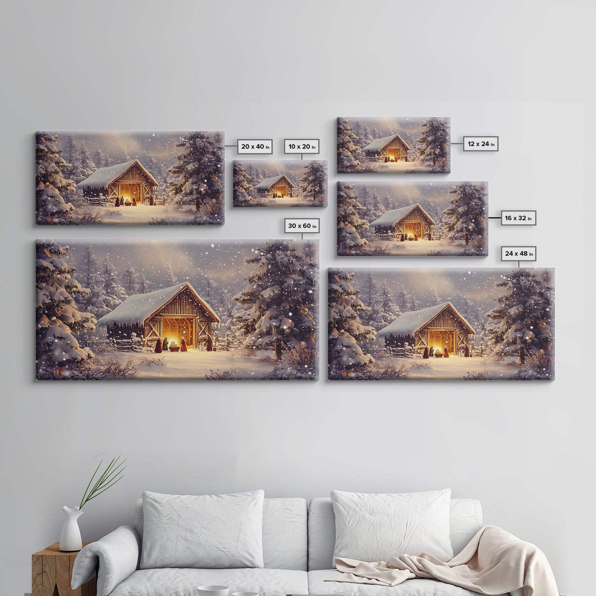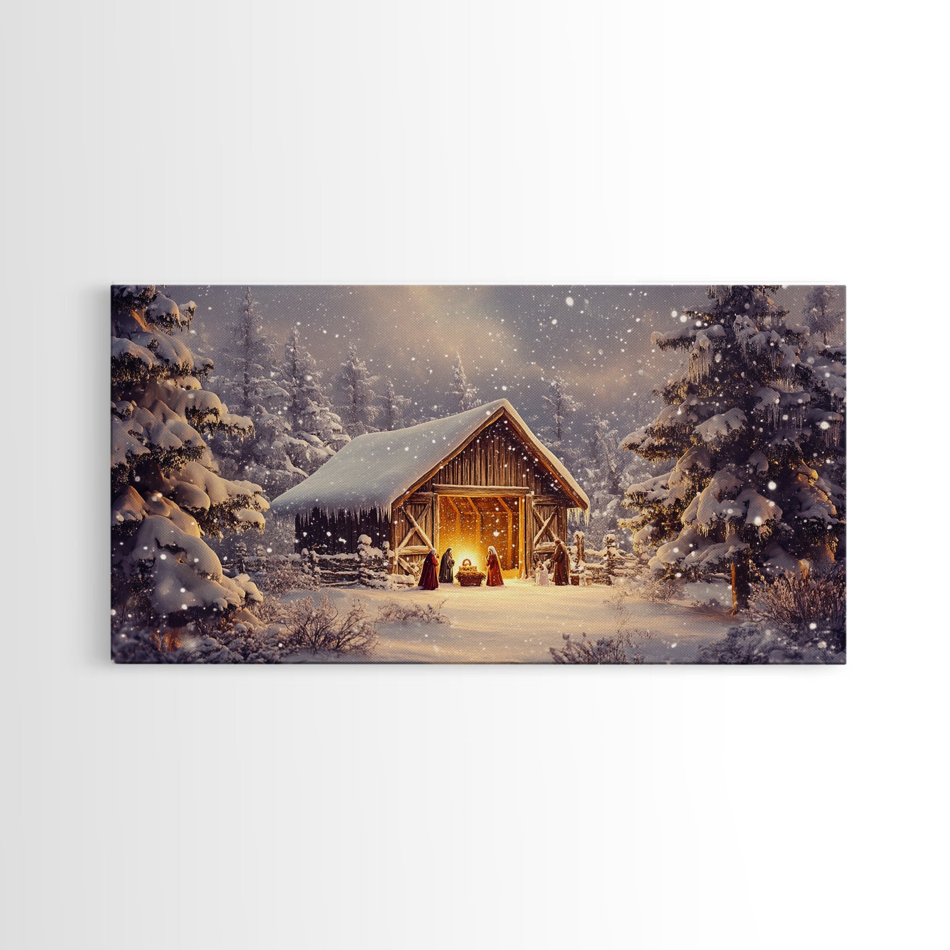 Nativity Scene Framed Canvas Print, Jesus in His Manger, Christmas Wall Art, Christmas Centerpiece Art, Nativity Oil Painting