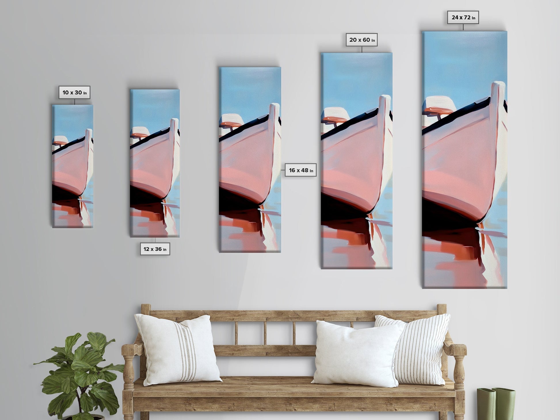 Nautical Escape, Coastal Boat Painting, Soft Pastel Seascape, Beach House Wall Decor, Minimalist Art, Living Room Framed Canvas Print