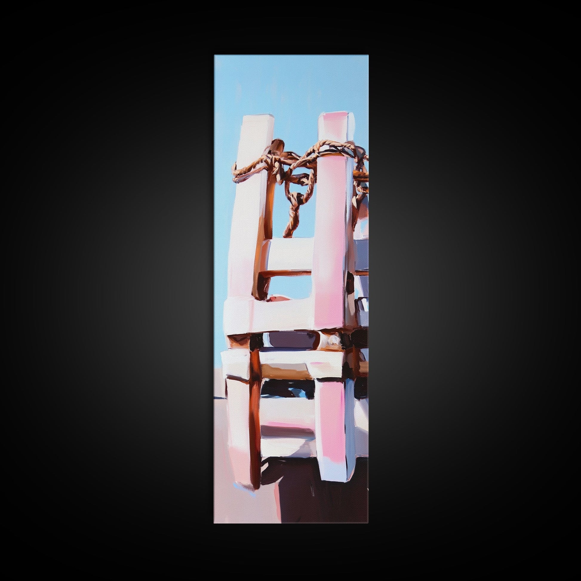 Nautical Ladder, Rustic, Beach House Decor, Coastal Wall Art, Ocean Painting, Blue Tones, Minimalist Seascape, Canvas Print