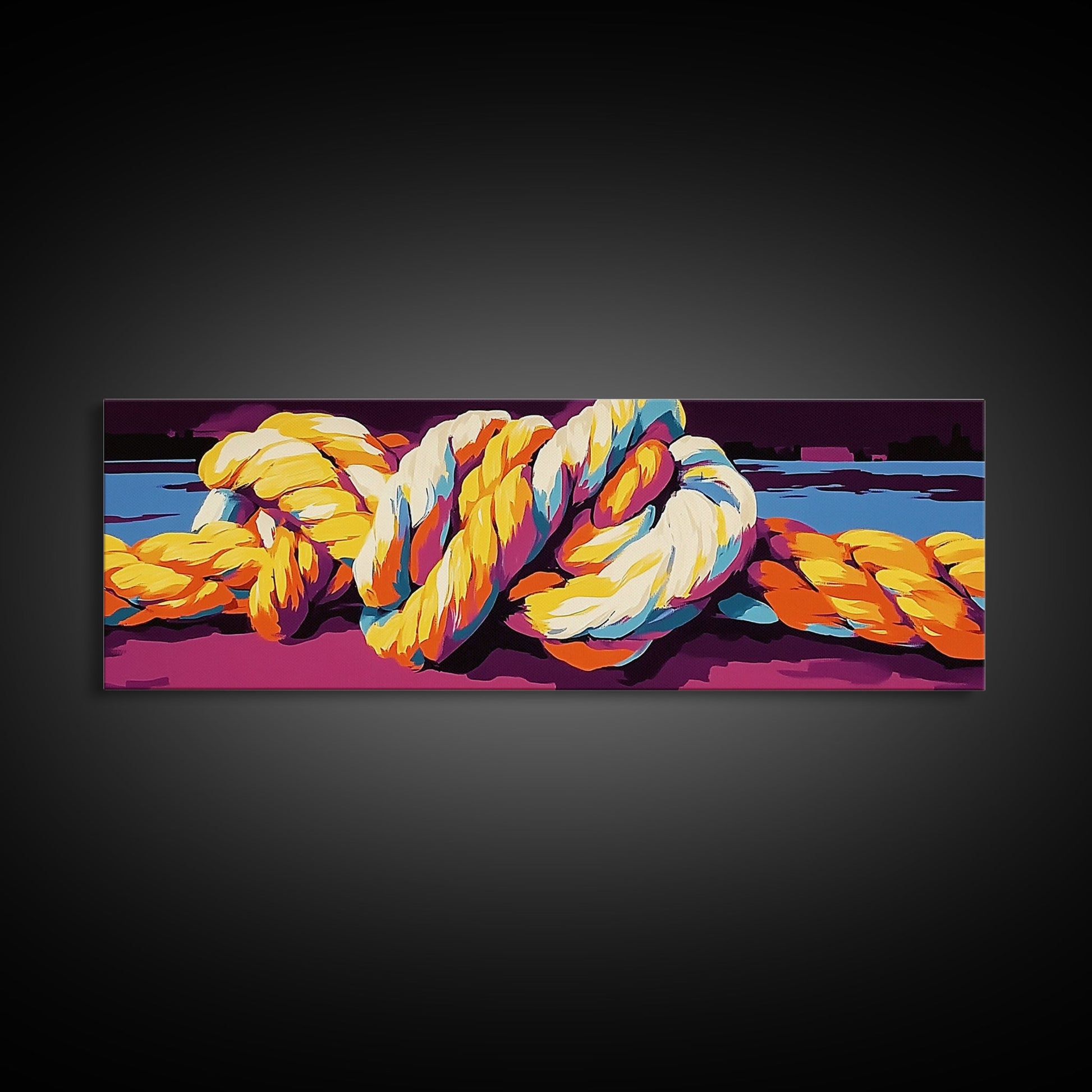 Nautical Rope, Ocean Harbor, Coastal Decor, Maritime Wall Art, Framed Canvas Print, Living Room, Beach House Artwork, Bold Nautical Art