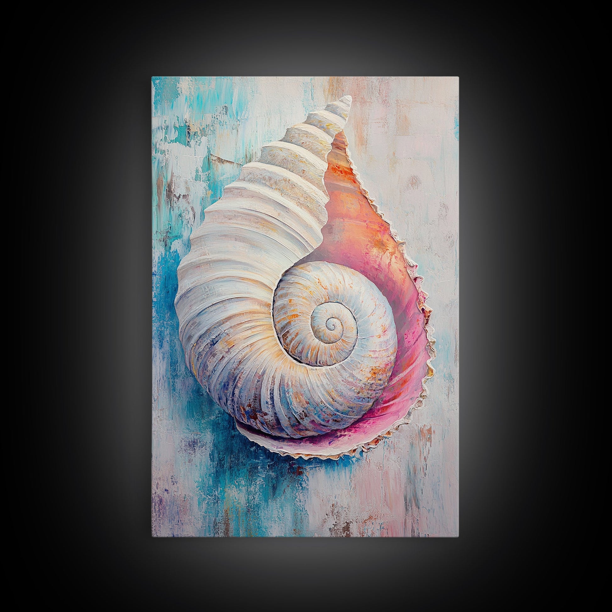 Nautical Shell Framed Canvas Print Coastal Boho Wall Art, Ocean Beach House Decor, Pastel Seashell Painting, Relaxing Seaside Artwork