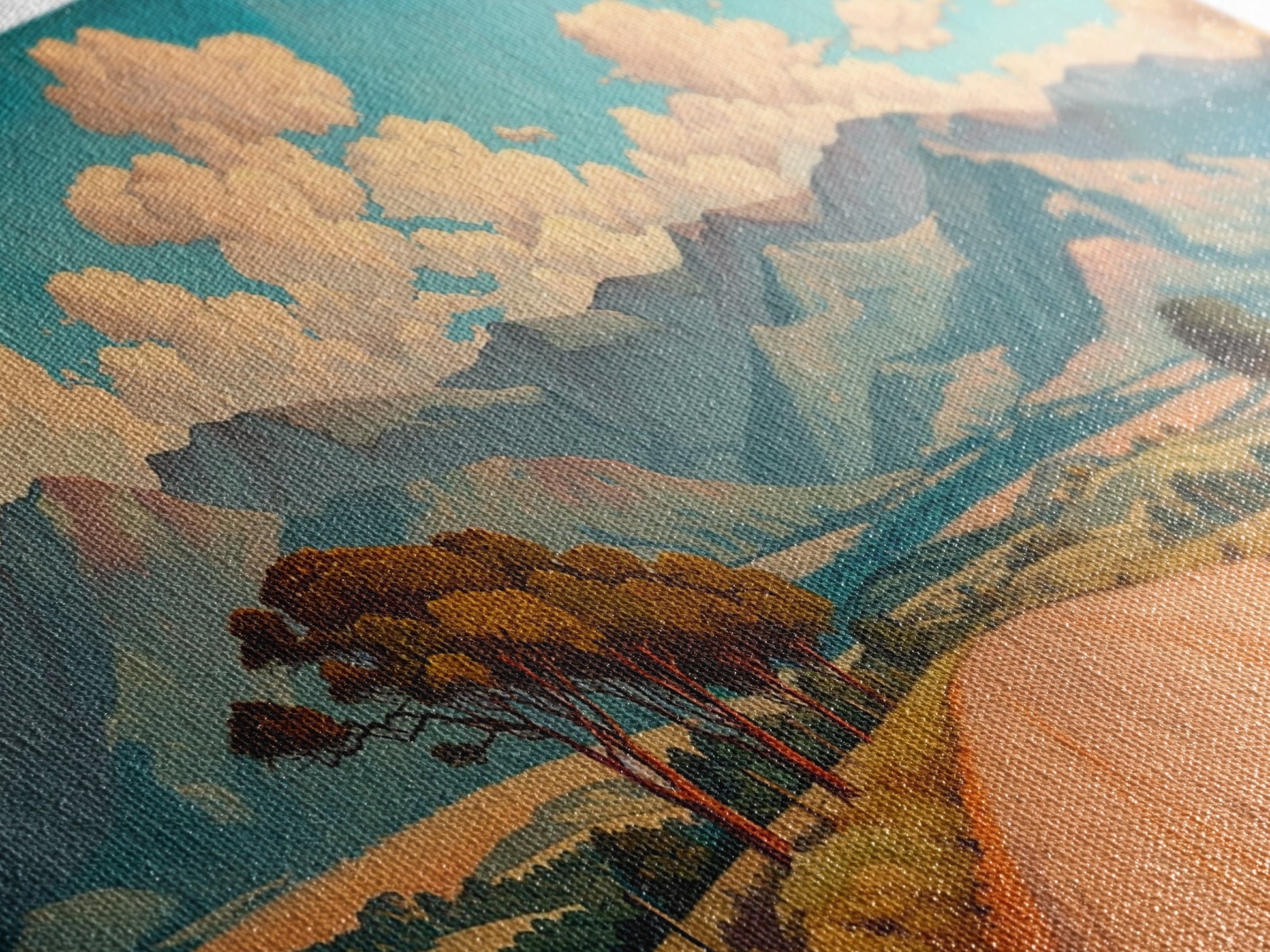 Most of our canvases are made in the USA, with the exception of canvases ordered with the light oak unstained frames, and any large canvases (24x48, 30x60, 16x48 and 20x60) ordered WITH a frame. These are temporarily made in and shipped from Europe, while we try to find a more consistent supplier in the USA.