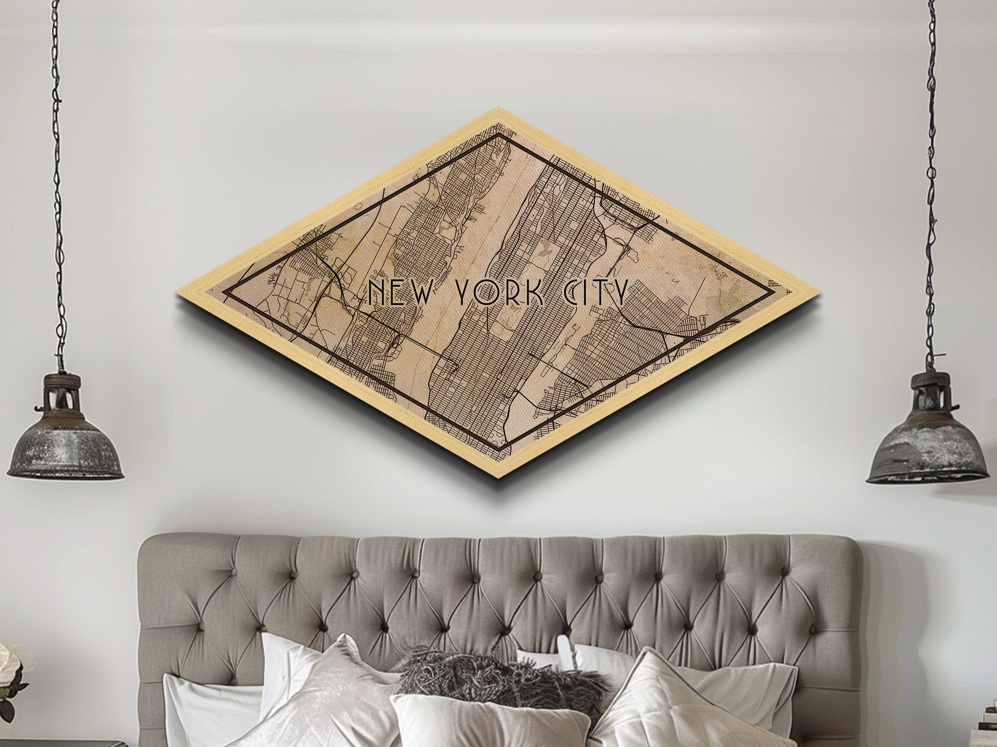 New York Diamond Shaped City Map, Custom Diamond Shaped Wall Art, City Map Canvas