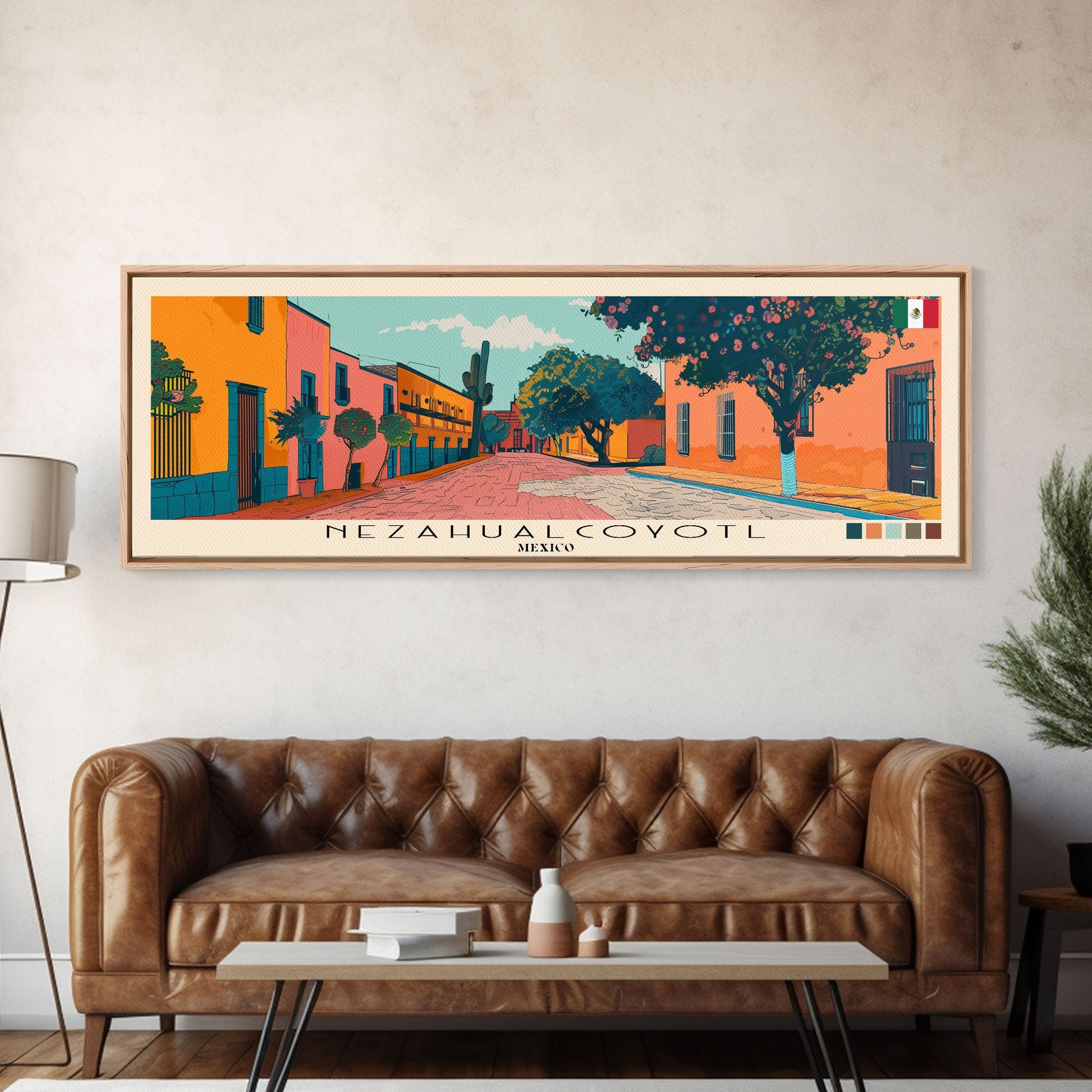 Nezahualcoyotl, Mexico Panoramic Canvas Print, Nezahualcoyotl, Mexico Painting, Mexico Art, Nezahualcoyotl Travel Poster, Travel Art, Living Room Painting