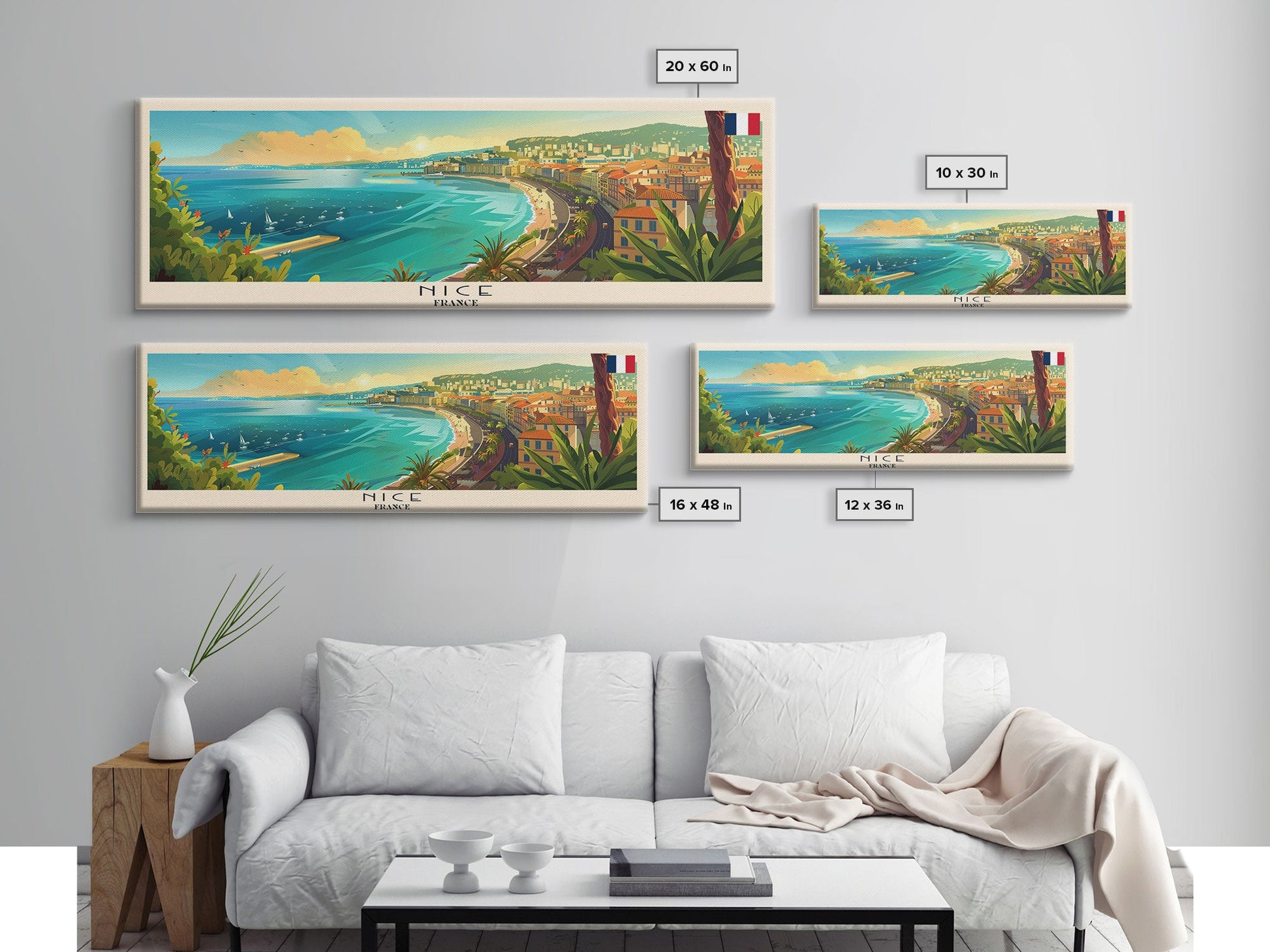 Nice France Travel Art, City Art, Framed Canvas Print or Metal Wall Art, Europe Travel Poster, Panoramic Wall Art, Extra Wide Wall Art
