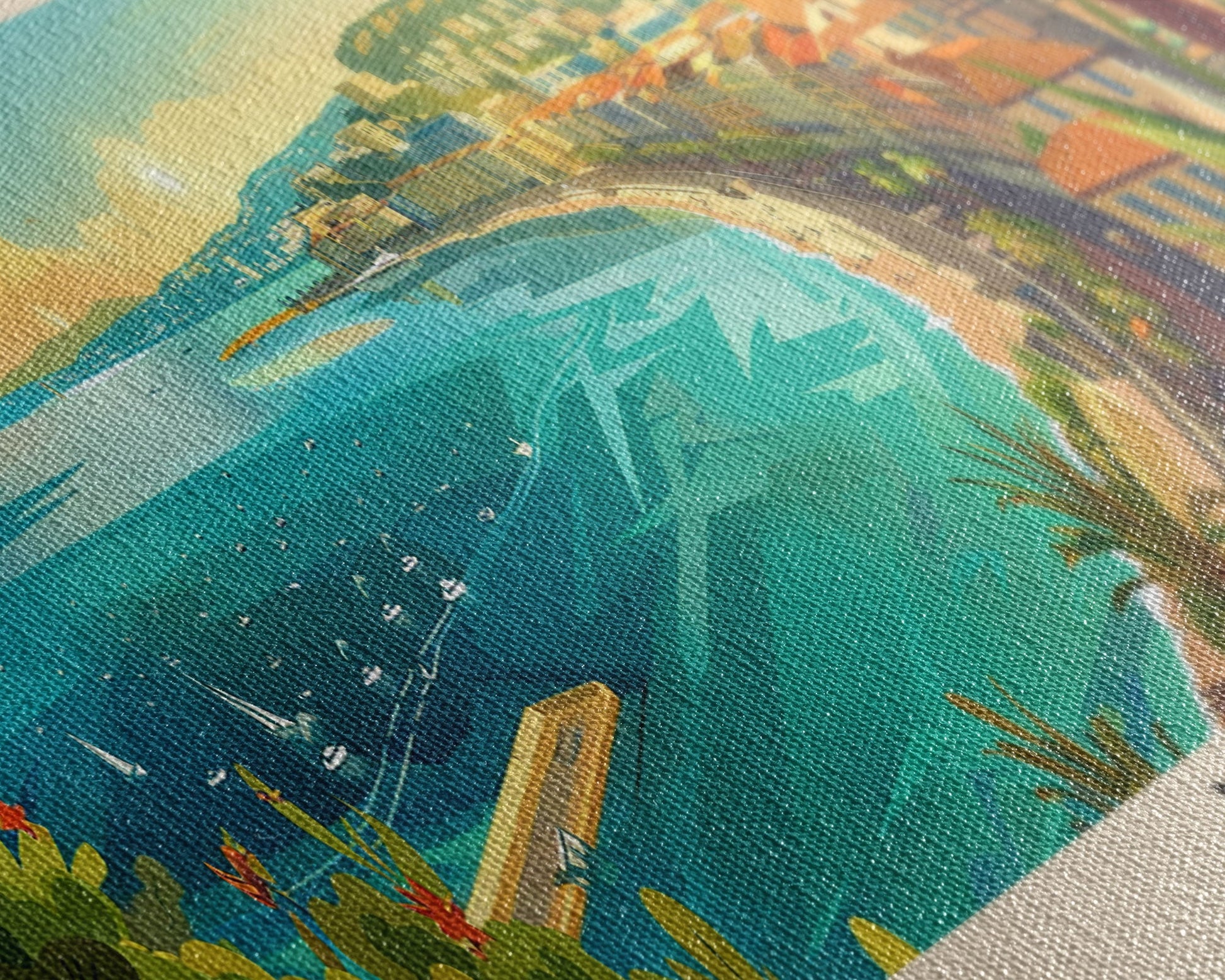 Most of our canvases are made in the USA, with the exception of canvases ordered with the light oak unstained frames, and any large canvases (24x48, 30x60, 16x48 and 20x60) ordered WITH a frame. These are temporarily made in and shipped from Europe, while we try to find a more consistent supplier in the USA.