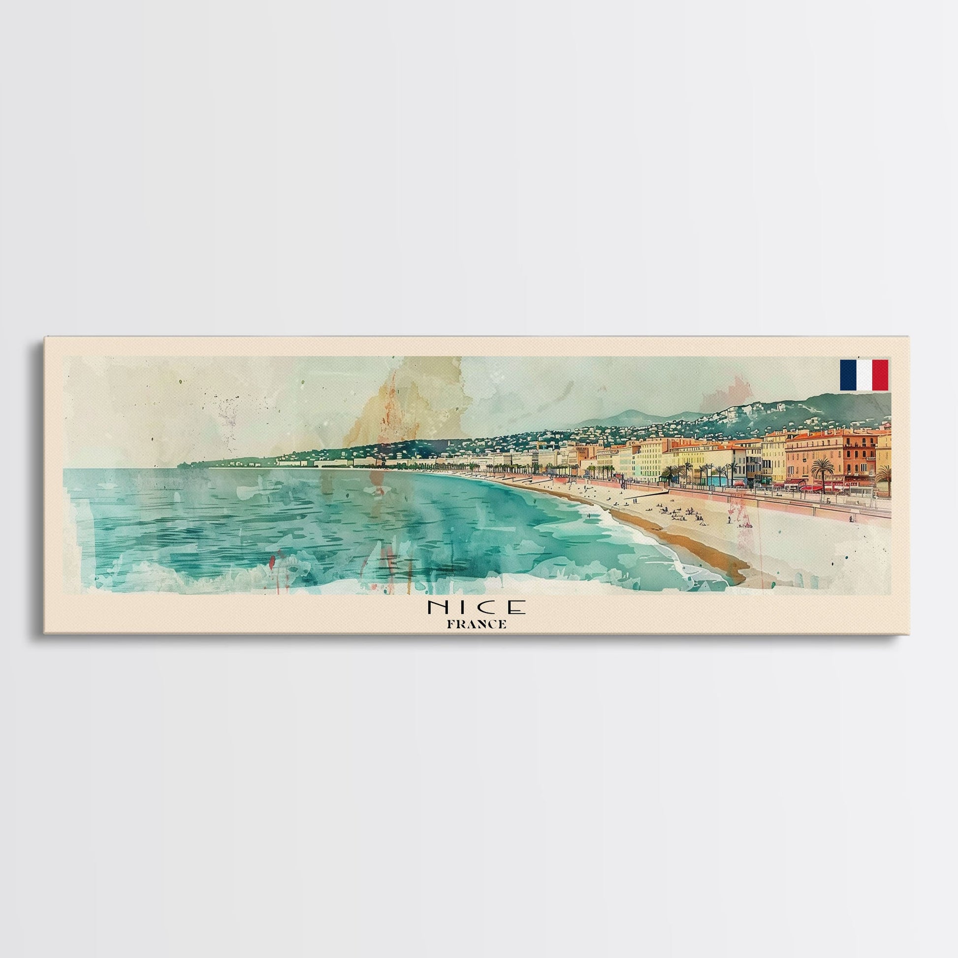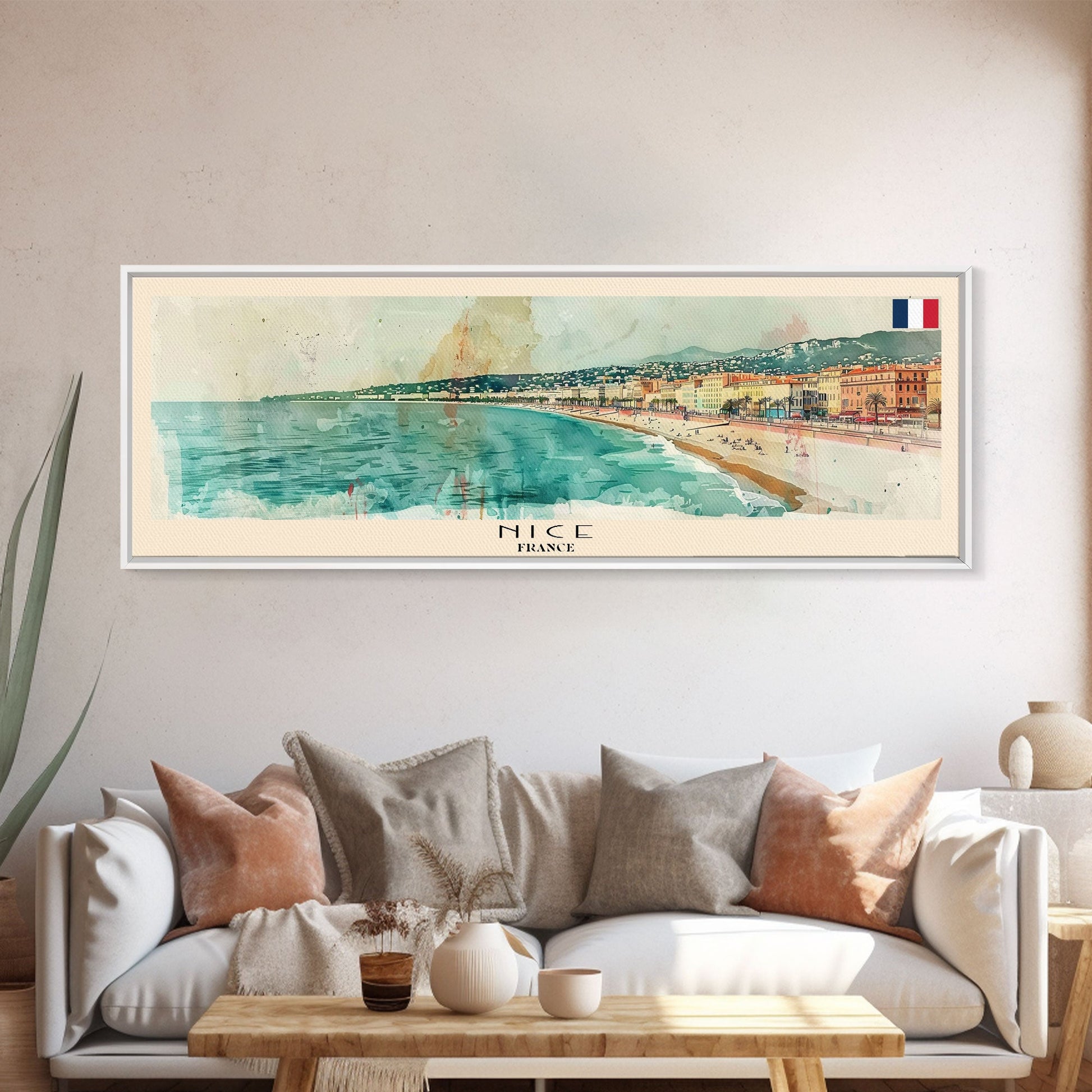 Nice France Travel Art, City Art, Framed Canvas Print or Metal Wall Art, Europe Travel Poster, Panoramic Wall Art, Extra Wide Wall Art