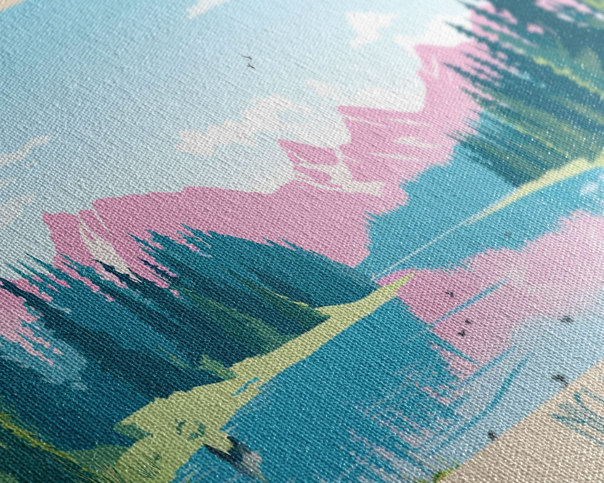 Most of our canvases are made in the USA, with the exception of canvases ordered with the light oak unstained frames, and any large canvases (24x48, 30x60, 16x48 and 20x60) ordered WITH a frame. These are temporarily made in and shipped from Europe, while we try to find a more consistent supplier in the USA.