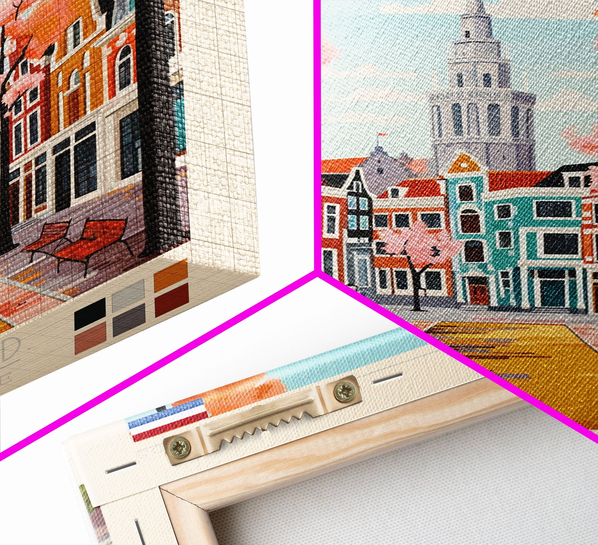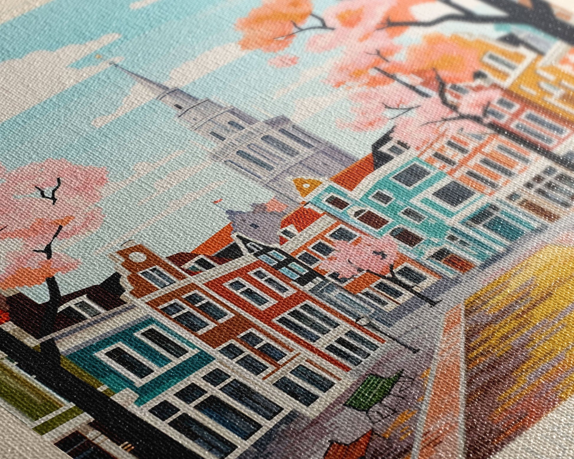 Nijmegen Netherlands Travel Poster Framed Canvas Print, Midcentury Modern Art, Pop Art Wall Decor, Scenic Living Room Art, Bedroom Gift