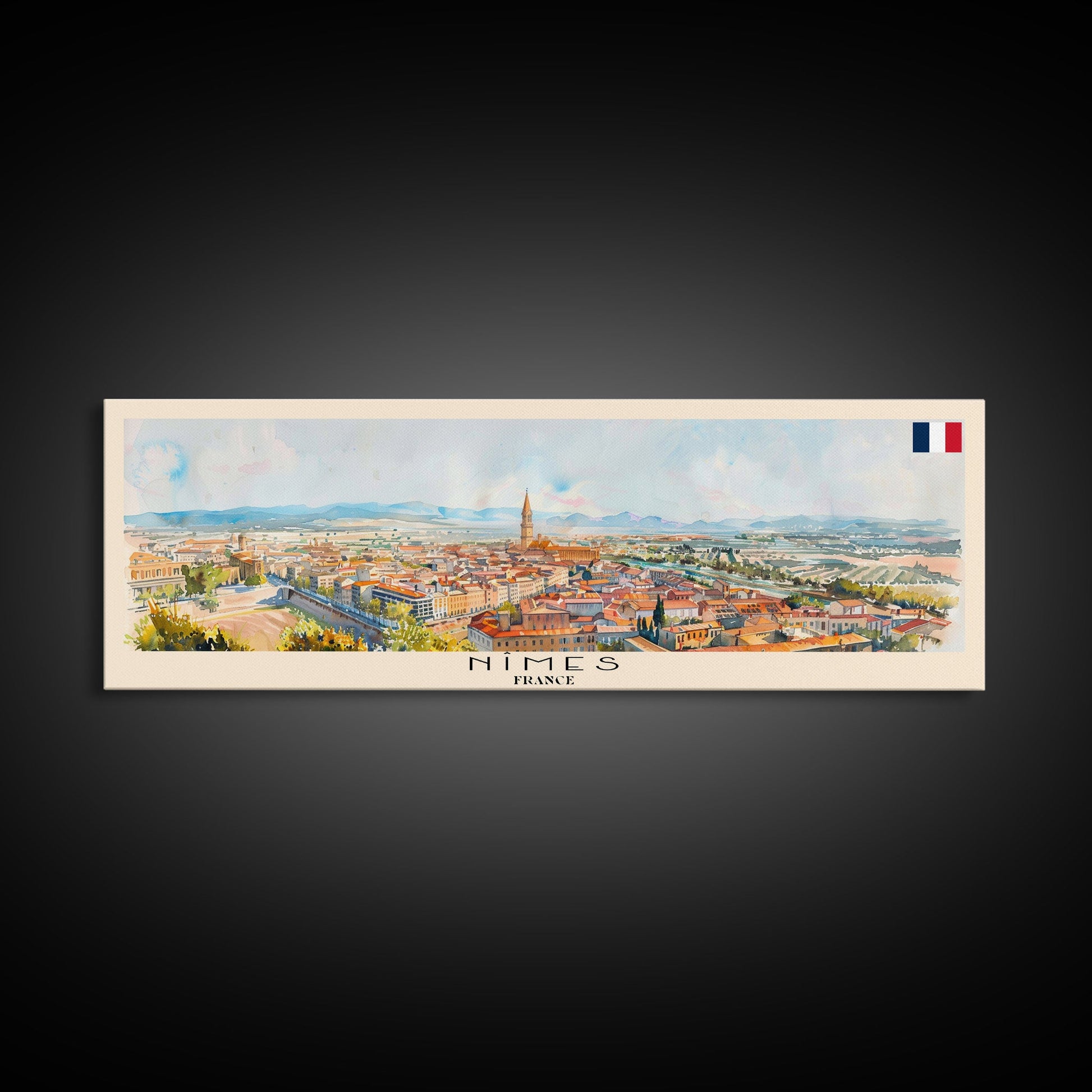 Nimes France Travel Art, City Art, Framed Canvas Print or Metal Wall Art, Europe Travel Poster, Panoramic Wall Art, Extra Wide Wall Art