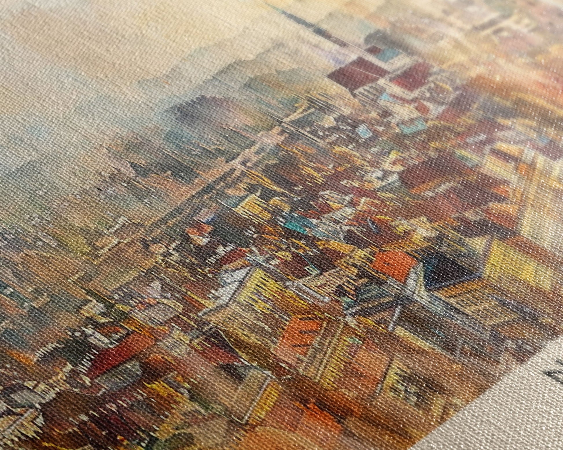 Most of our canvases are made in the USA, with the exception of canvases ordered with the light oak unstained frames, and any large canvases (24x48, 30x60, 16x48 and 20x60) ordered WITH a frame. These are temporarily made in and shipped from Europe, while we try to find a more consistent supplier in the USA.