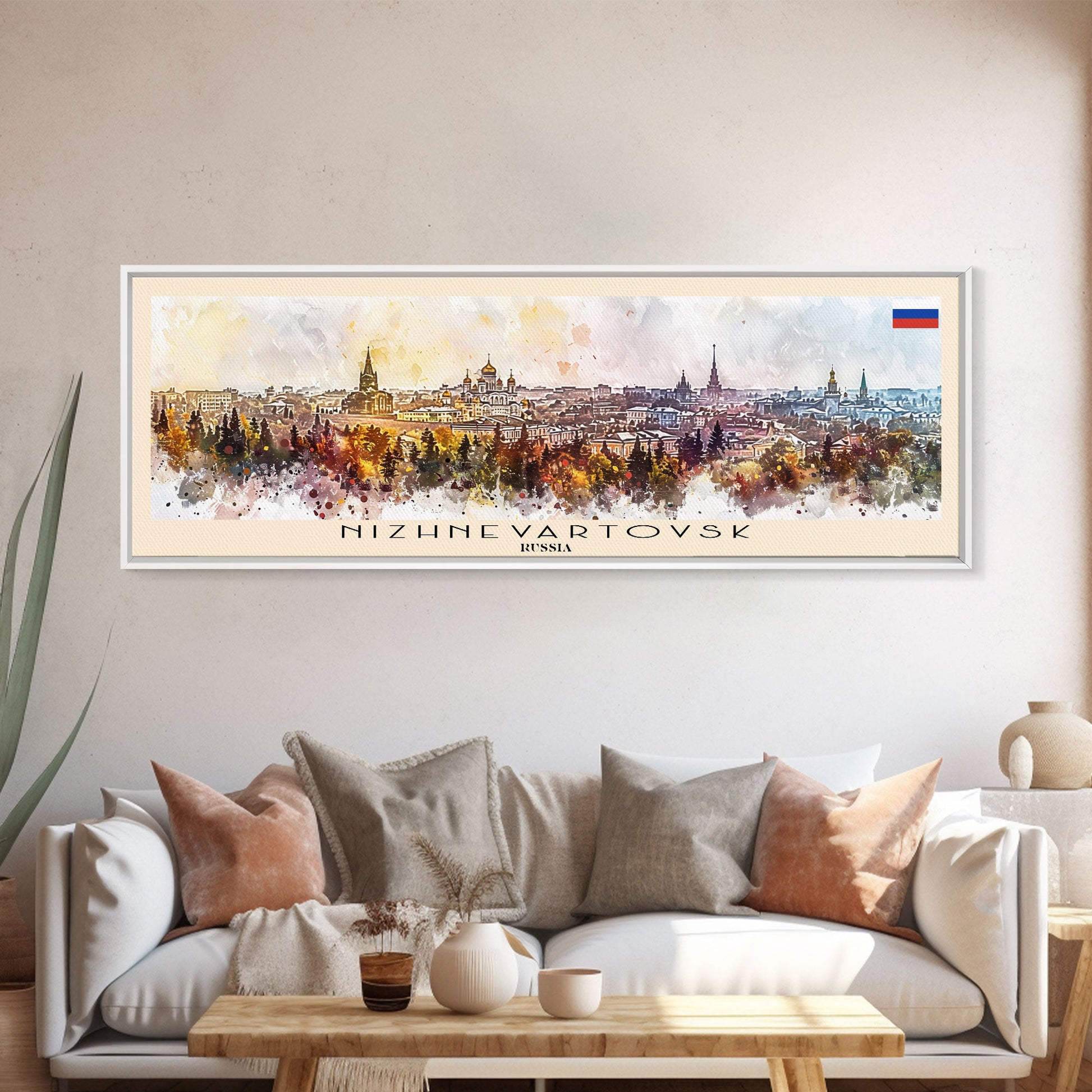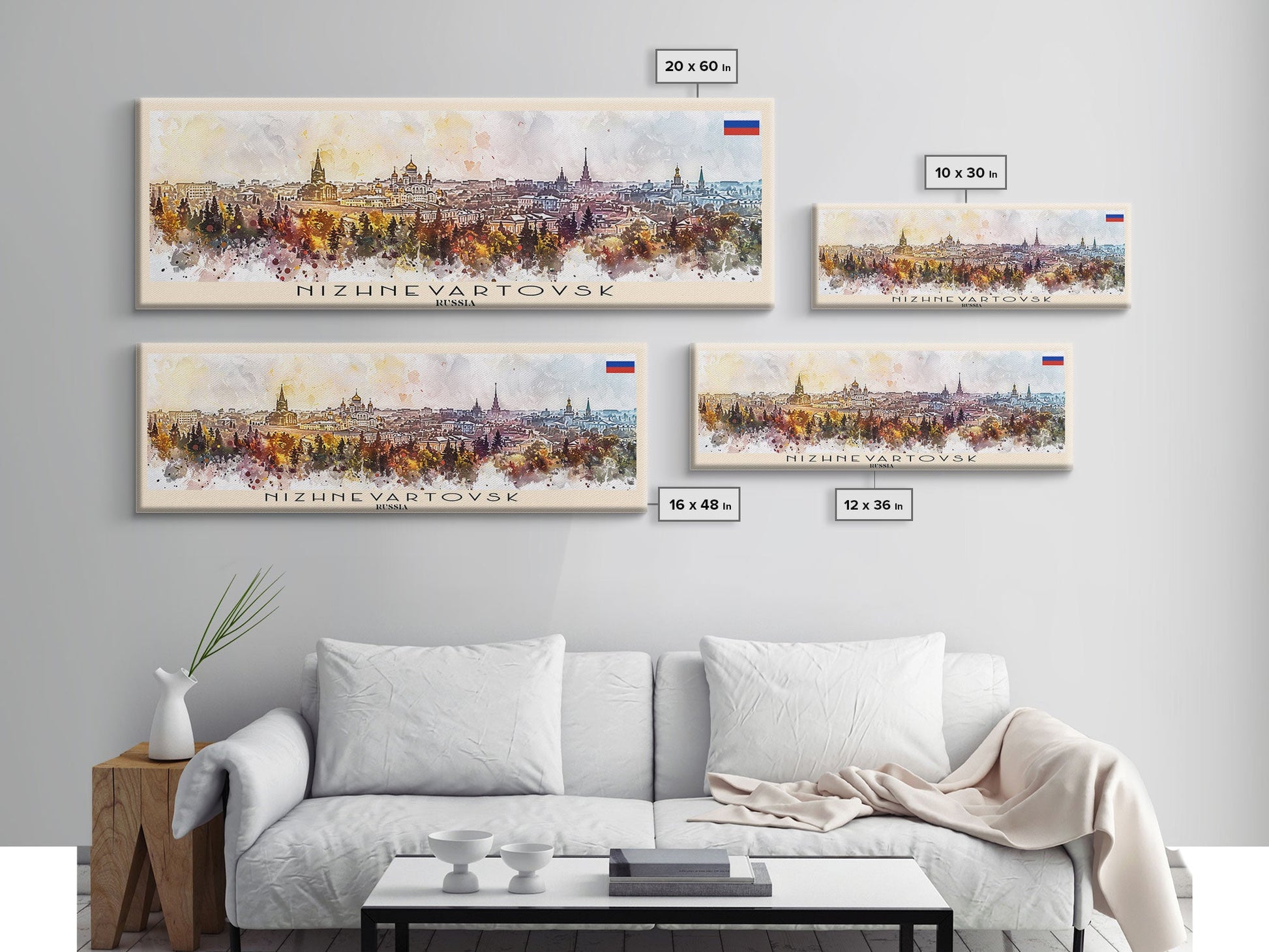 Nizhnevartovsk Russia Travel Art, City Art, Framed Canvas Print or Metal Wall Art, Europe Travel Poster, Panoramic Wall Art, Extra Wide Wall Art