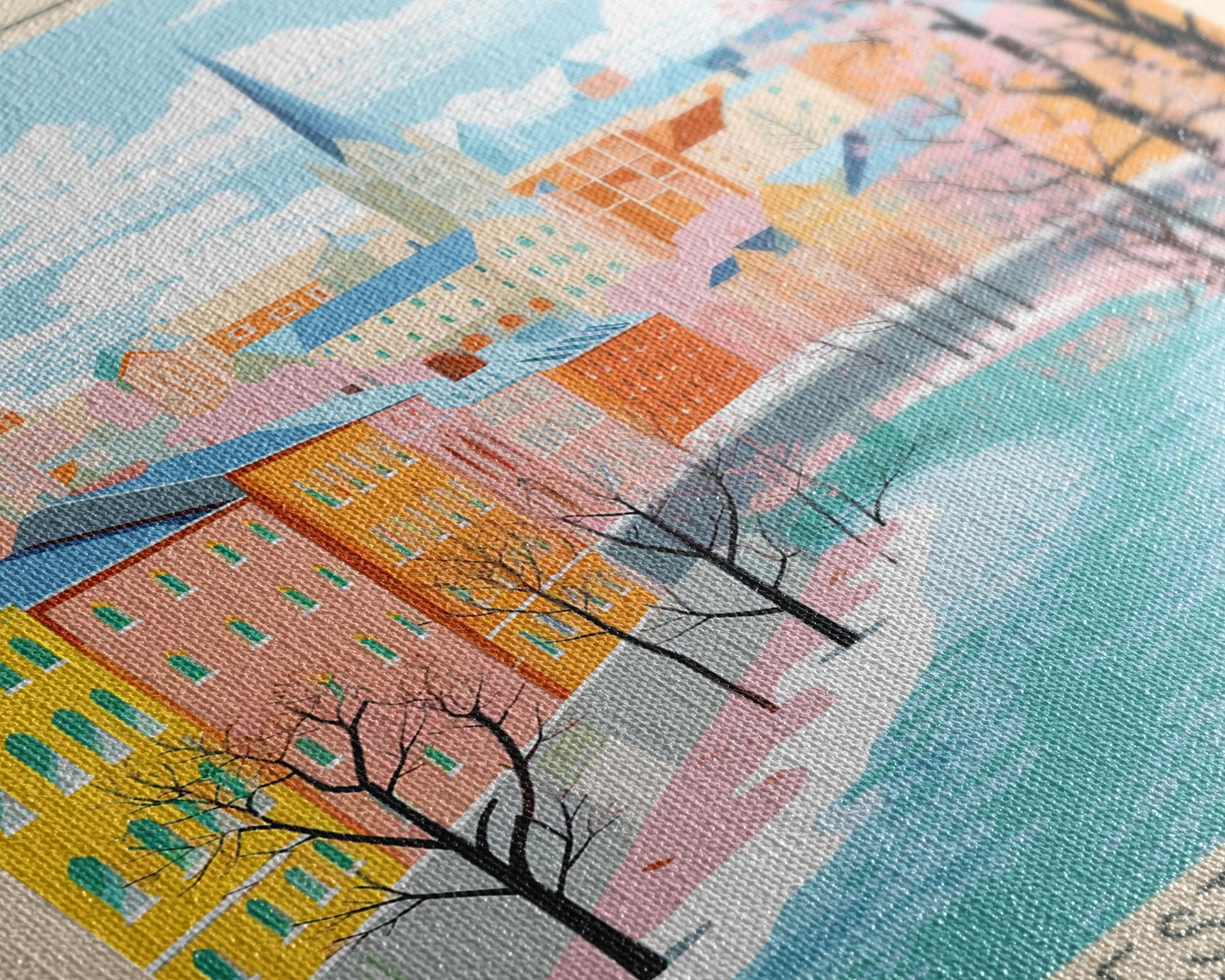Norrköping Sweden Travel Poster Framed Canvas Print, Midcentury Modern Art, Pop Art Wall Decor, Home Decor, Vacation Gift, Office Art