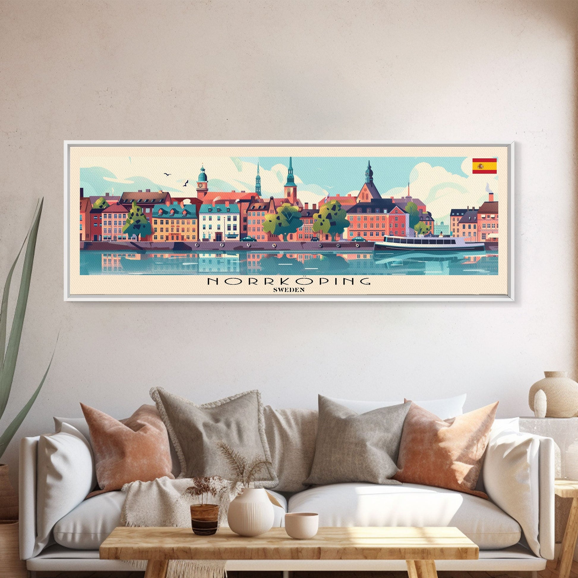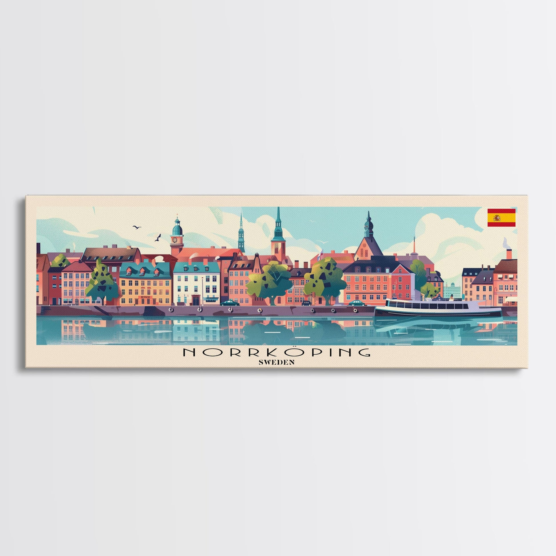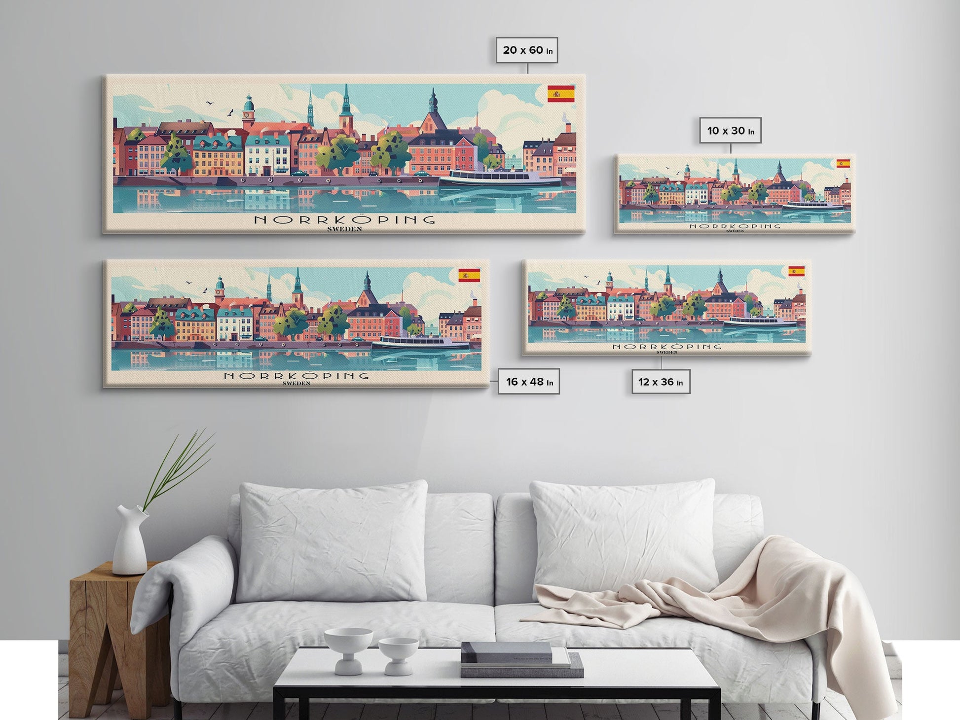 Norrkoping Sweden Travel Print Wall Art, Panoramic City Art, Travel Art, Wall Decor, Vacation Gift, Framed Canvas Print Or Metal Art