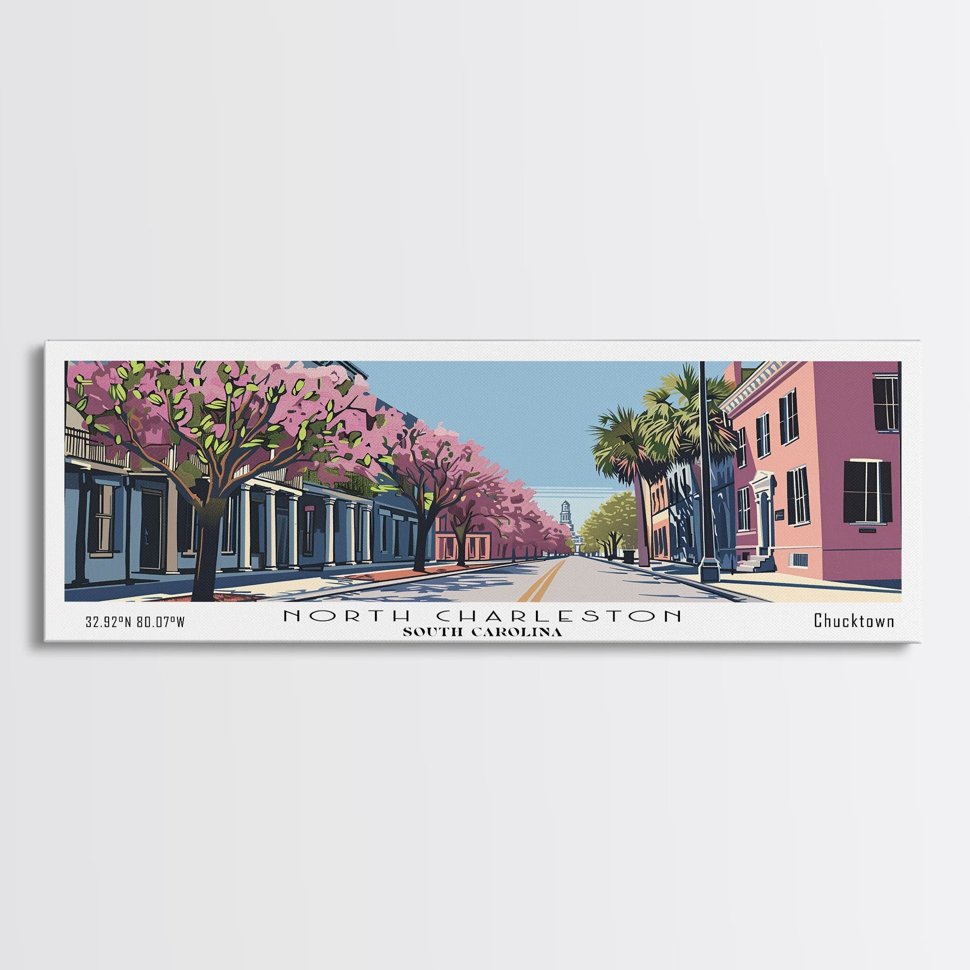 North Charleston South Carolina Panoramic Wall Art, Mid Century Modern Framed Canvas Print, Retro Pop Art Travel Poster, City Art, Office Wall Decor, Living Room Art