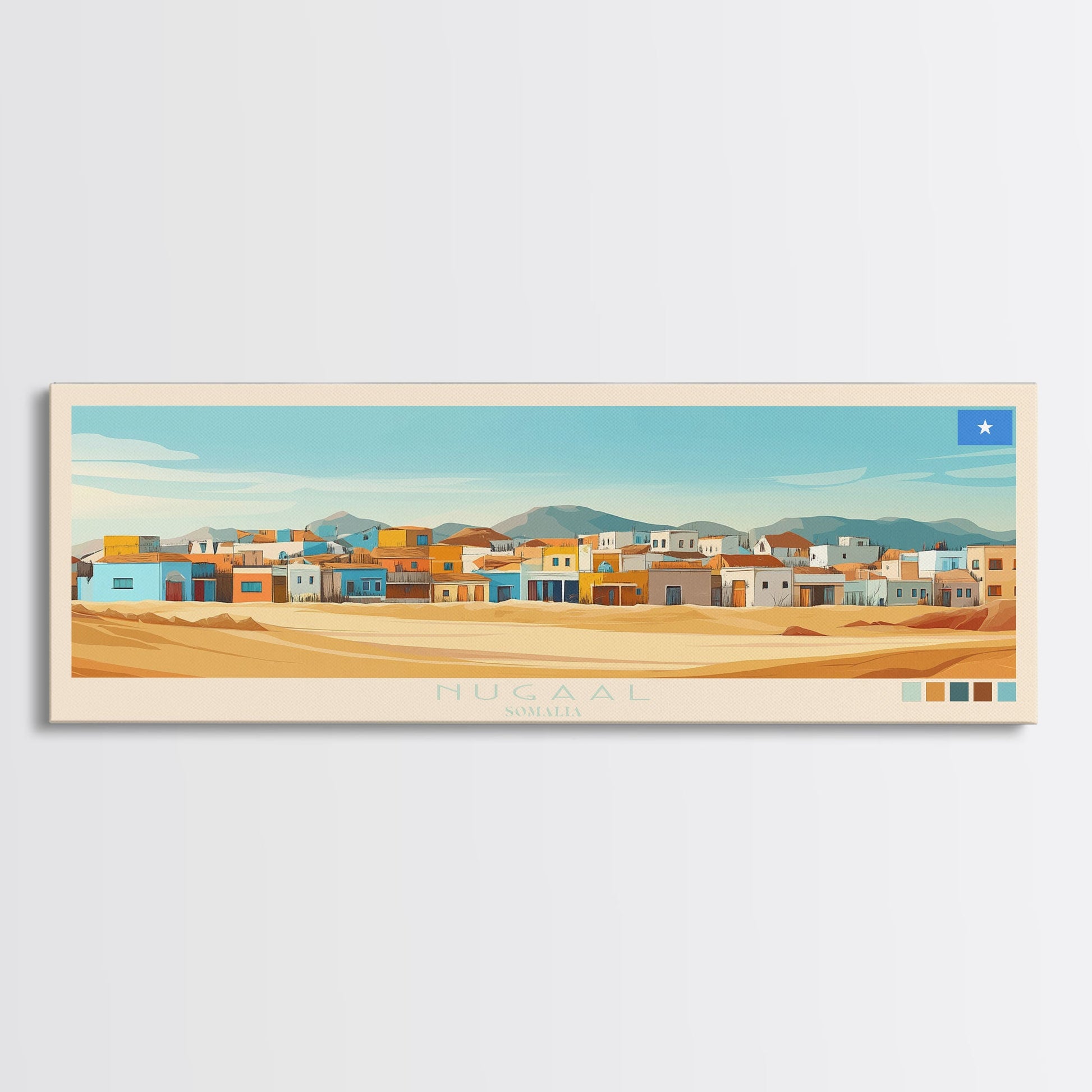 Nugaal, Somalia Panoramic Travel Poster Canvas Print, Nugaal, Somalia Painting, Somalia Art, Nugaal Travel Art, Living Room Painting