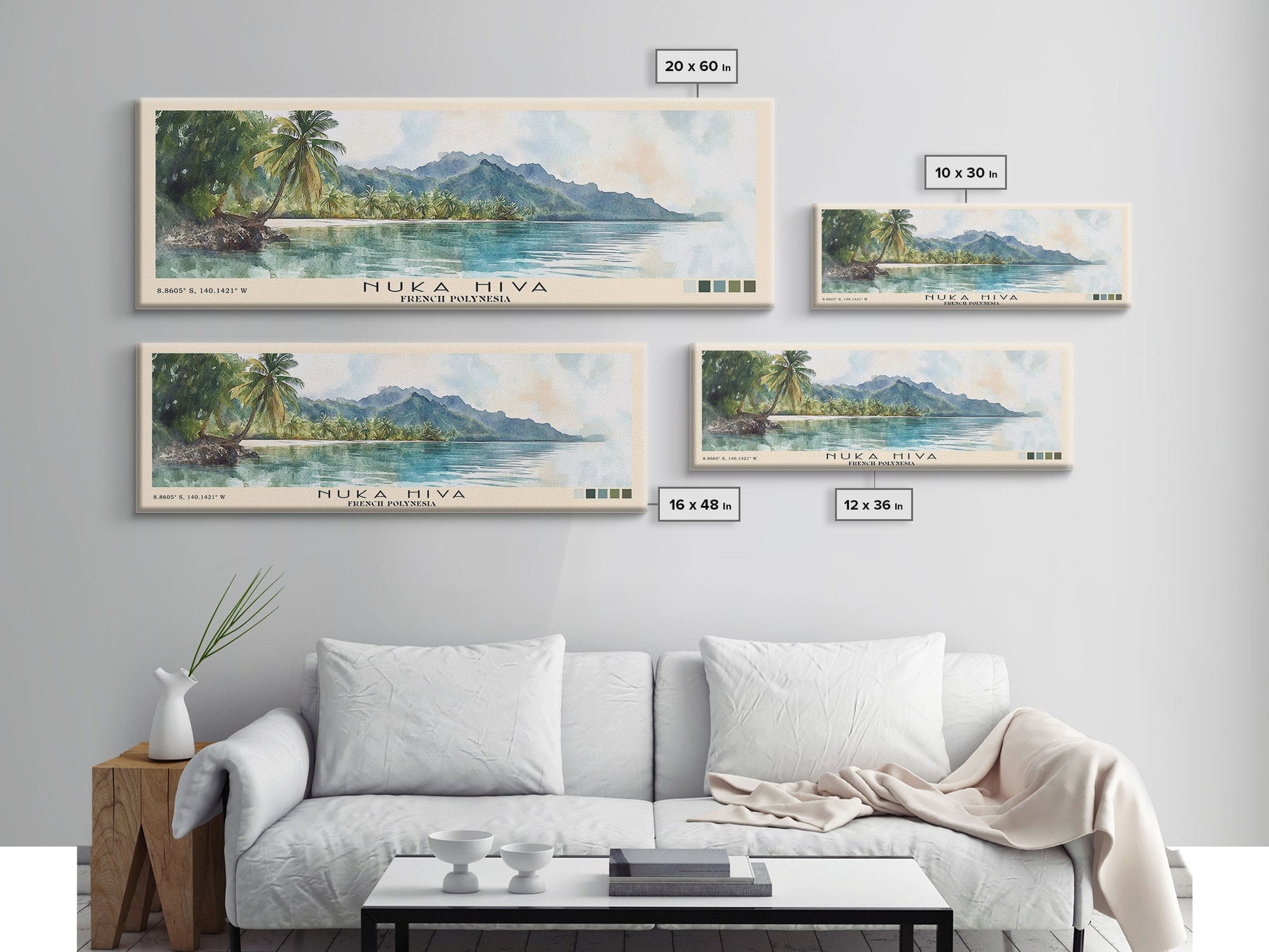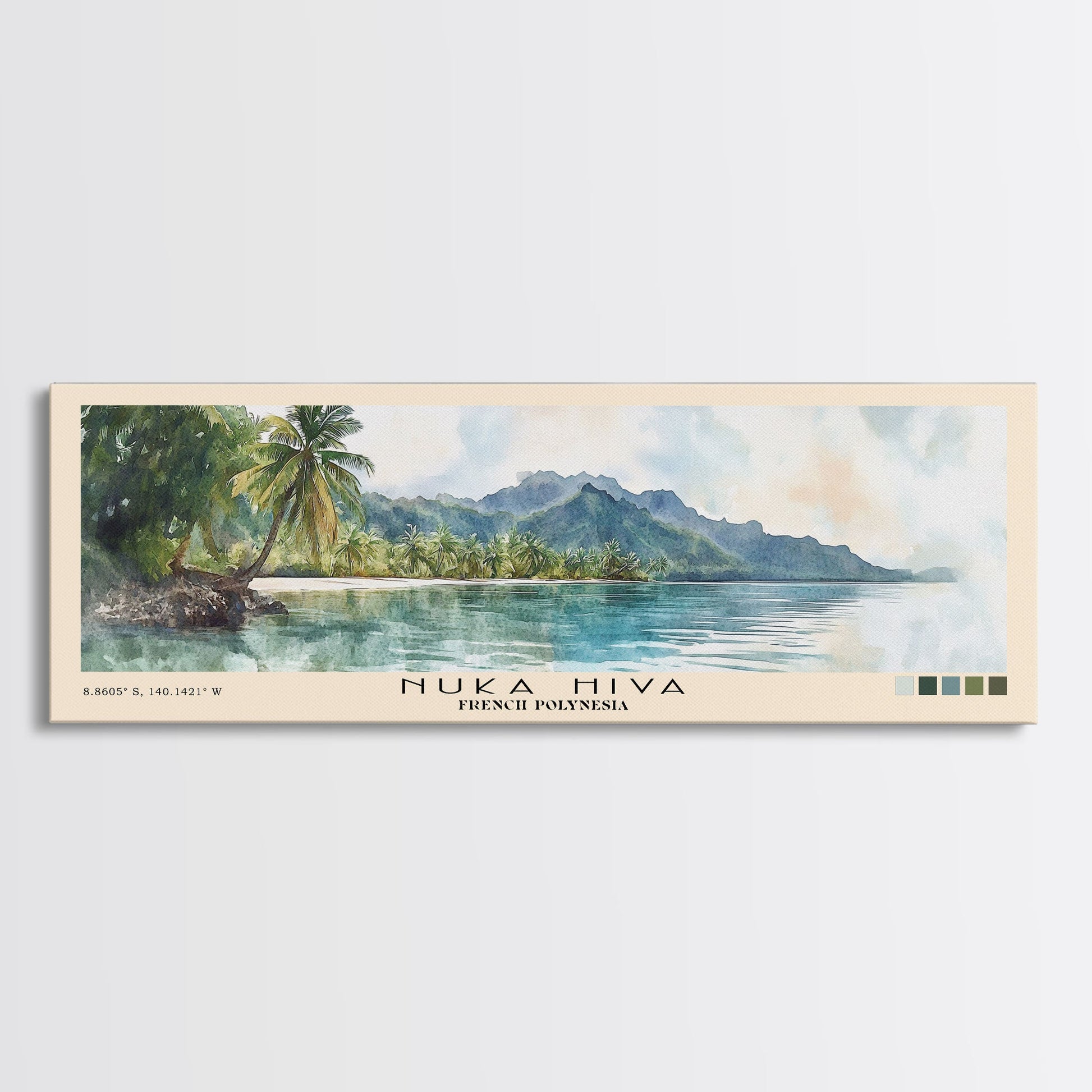 Nuka Hiva, French Polynesia Watercolor Beach Print, Vacation Gift, French Polynesia Wall Art, Framed Canvas Print, Framed Beach Painting