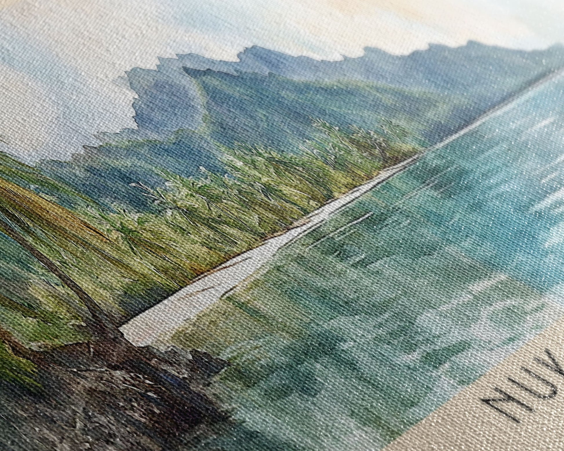 Most of our canvases are made in the USA, with the exception of canvases ordered with the light oak unstained frames, and any large canvases (24x48, 30x60, 16x48 and 20x60) ordered WITH a frame. These are temporarily made in and shipped from Europe, while we try to find a more consistent supplier in the USA.