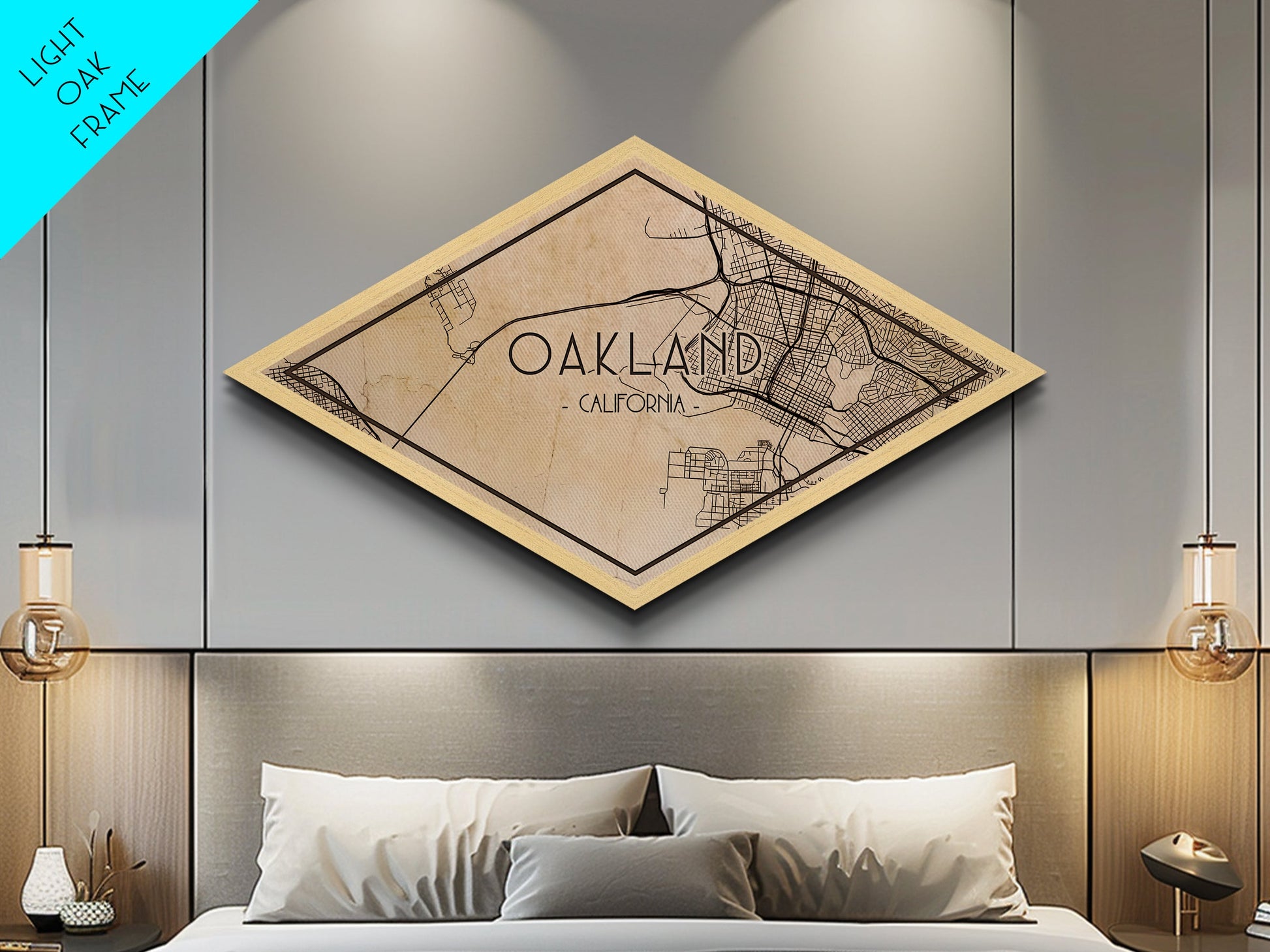 Oakland Diamond Shaped City Map, Custom Diamond Shaped Wall Art, City Map Canvas