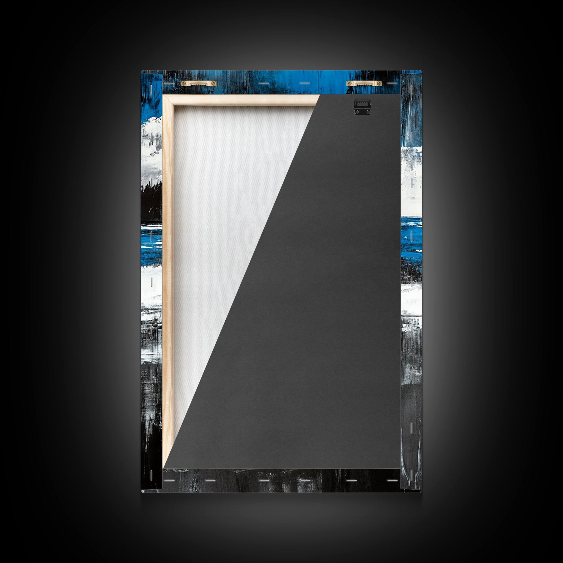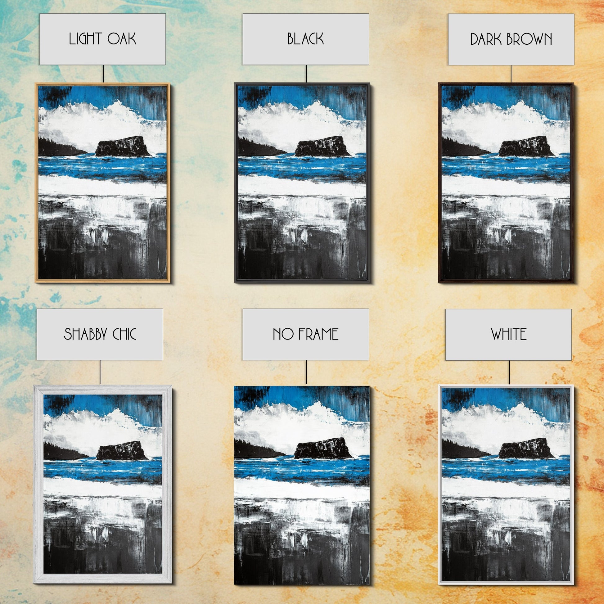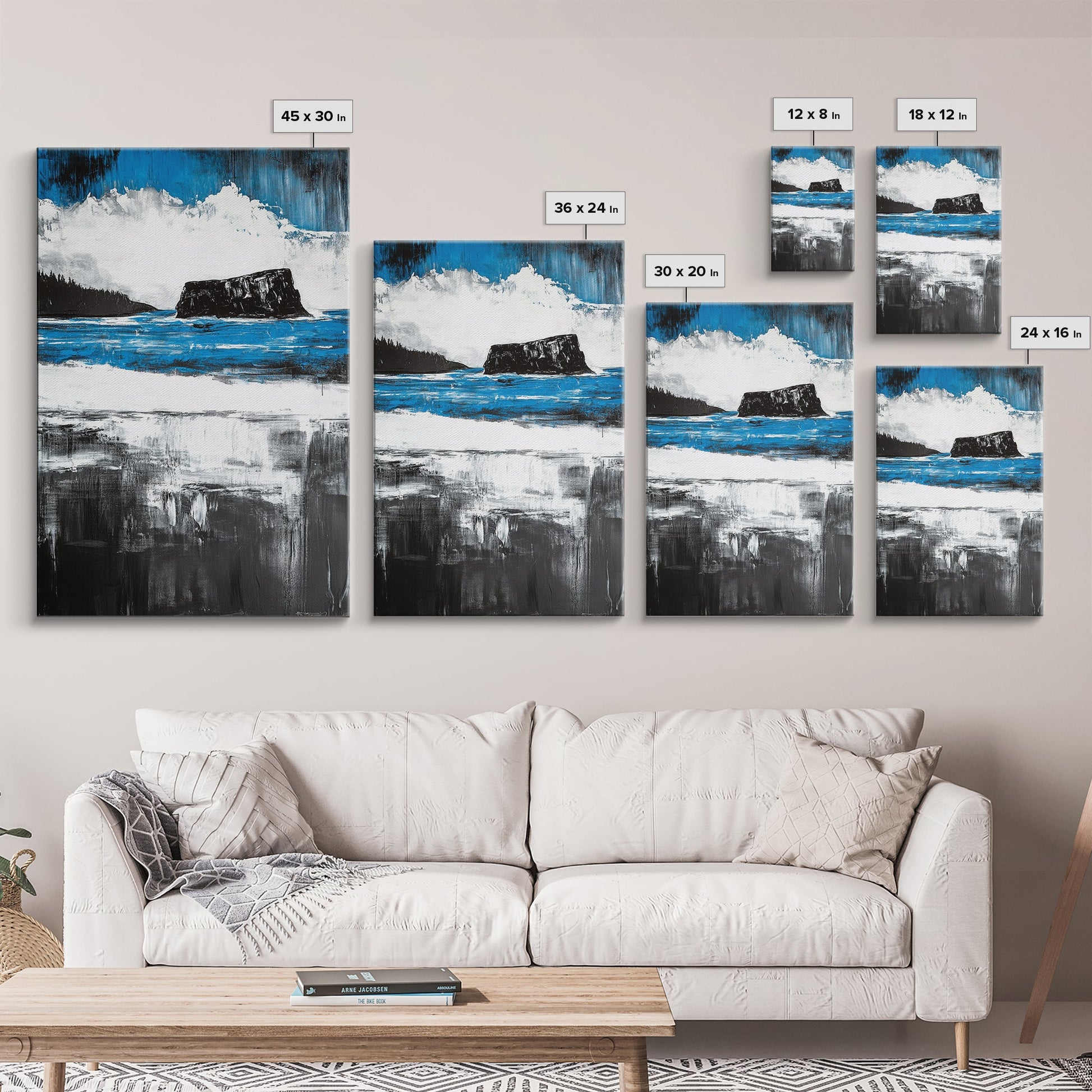 Ocean Cliff Seascape, Moody Coastal Art, Black White Blue Water, Modern Minimalist Wall Decor, Nautical Home Gift, Framed Canvas Print
