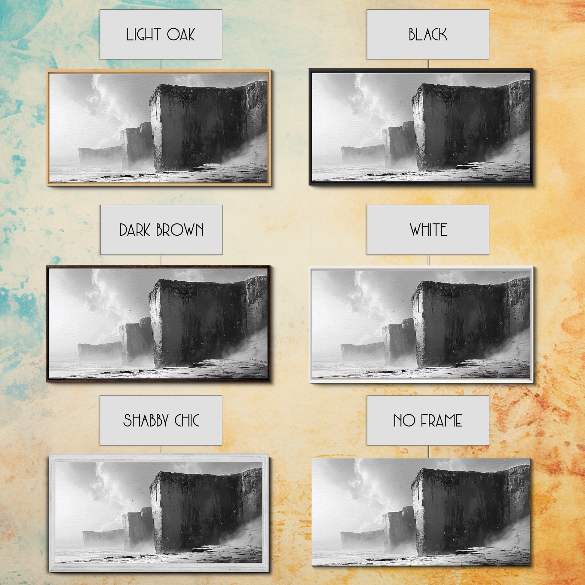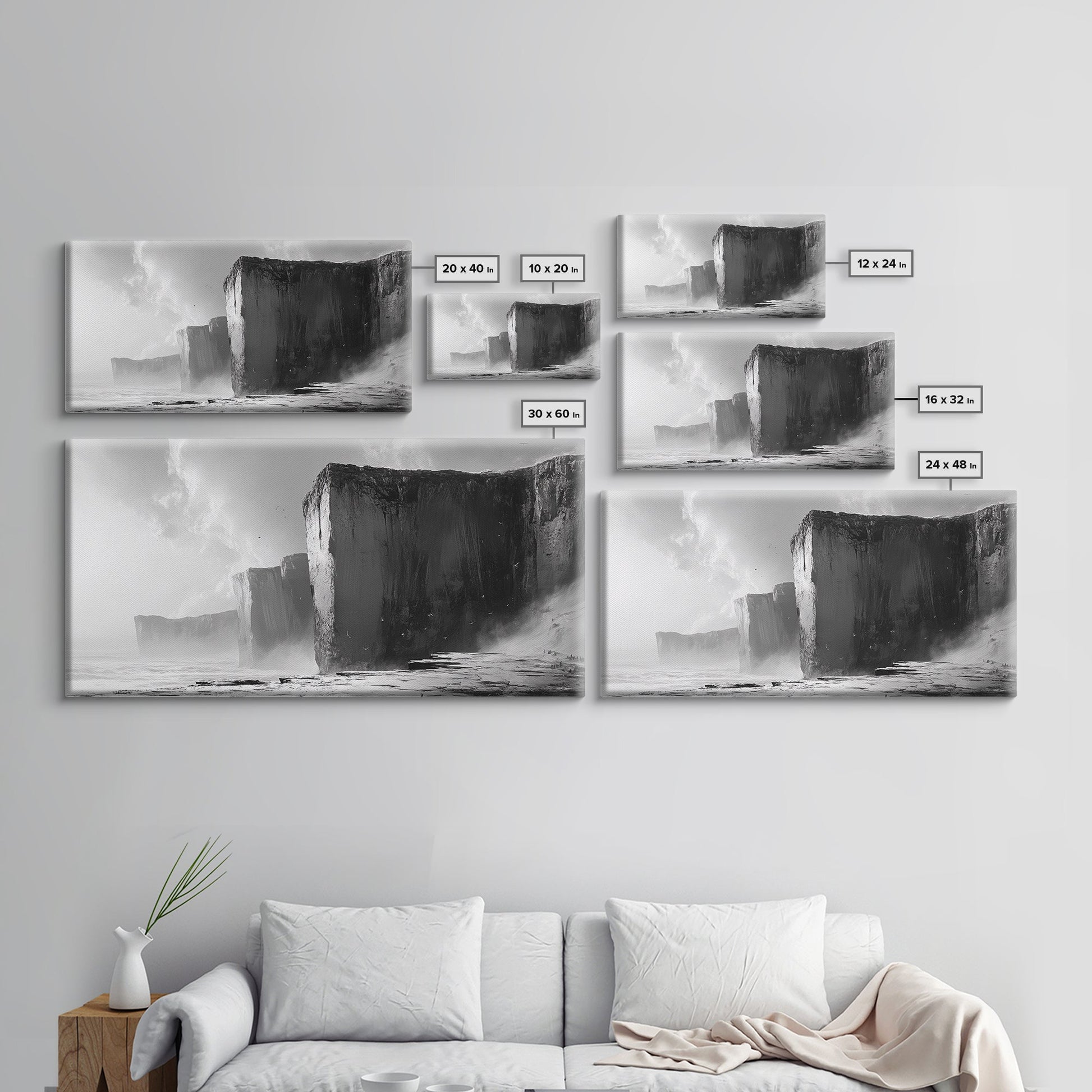 Ocean Cliffs, Towering Rock, Misty Coast, Rugged Seascape, Canvas Print, Moody Wall Art, Office Decor, Dramatic Landscape, Office Decor