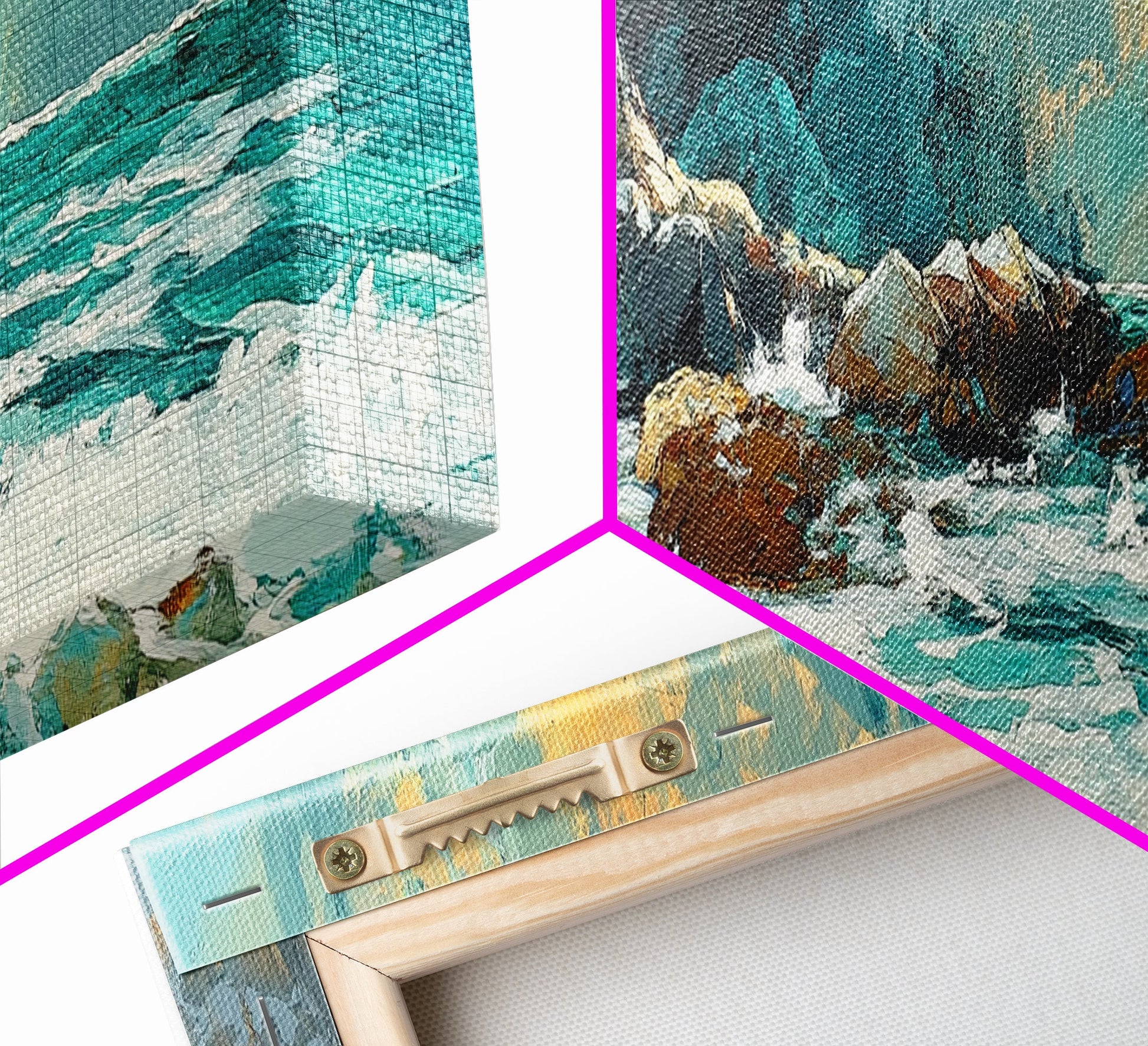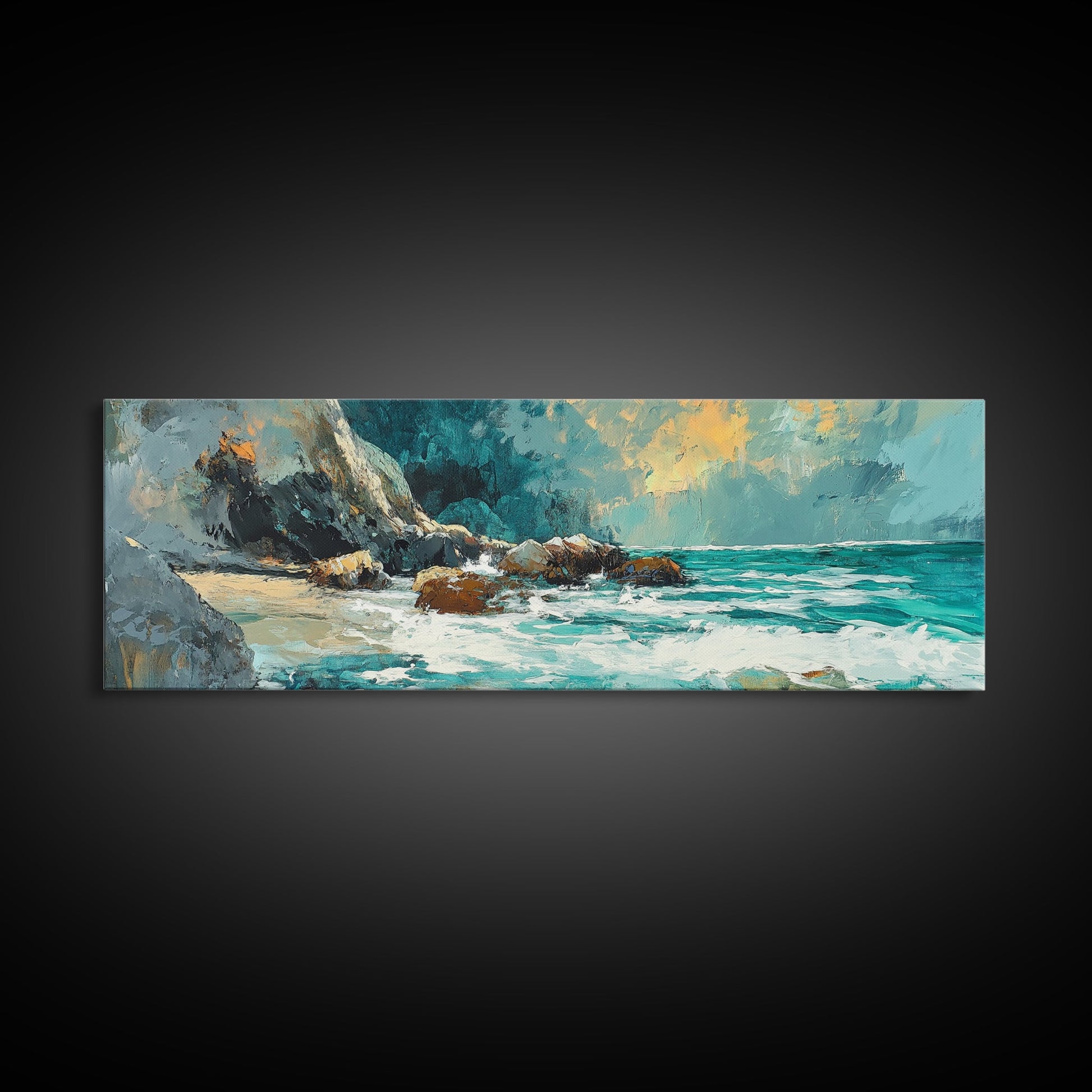 Ocean Cliffside Painting Coastal Rocky Beach Wall Art Dramatic Seascape Artwork Nautical Home Decor Dining Room