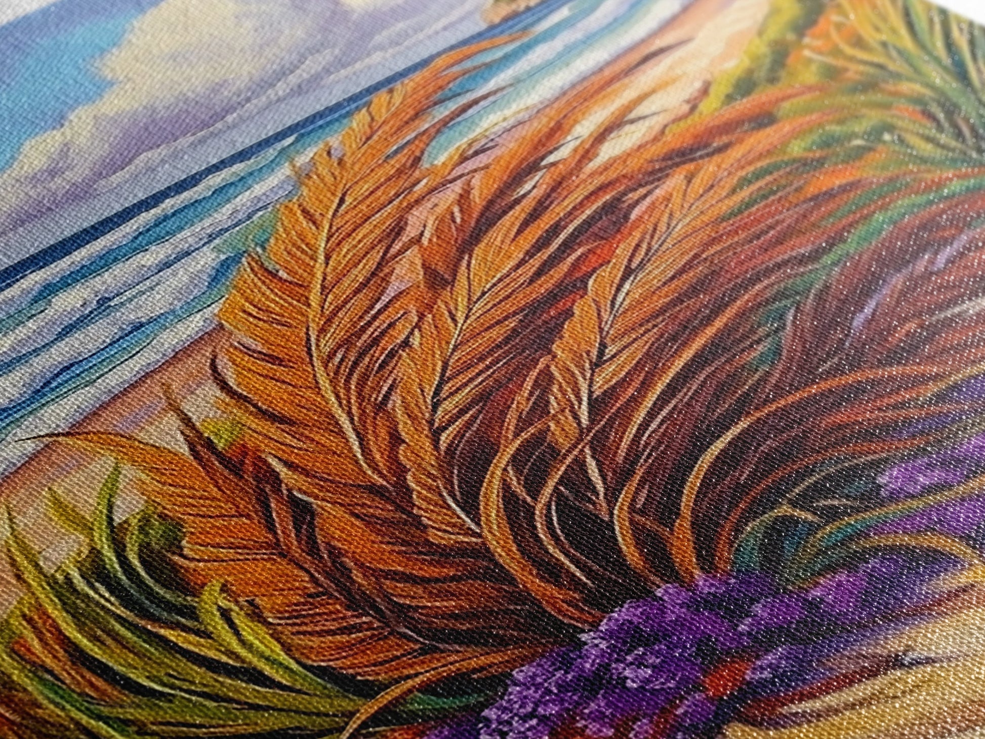 Most of our canvases are made in the USA, with the exception of canvases ordered with the light oak unstained frames, and any large canvases (24x48, 30x60, 16x48 and 20x60) ordered WITH a frame. These are temporarily made in and shipped from Europe, while we try to find a more consistent supplier in the USA.