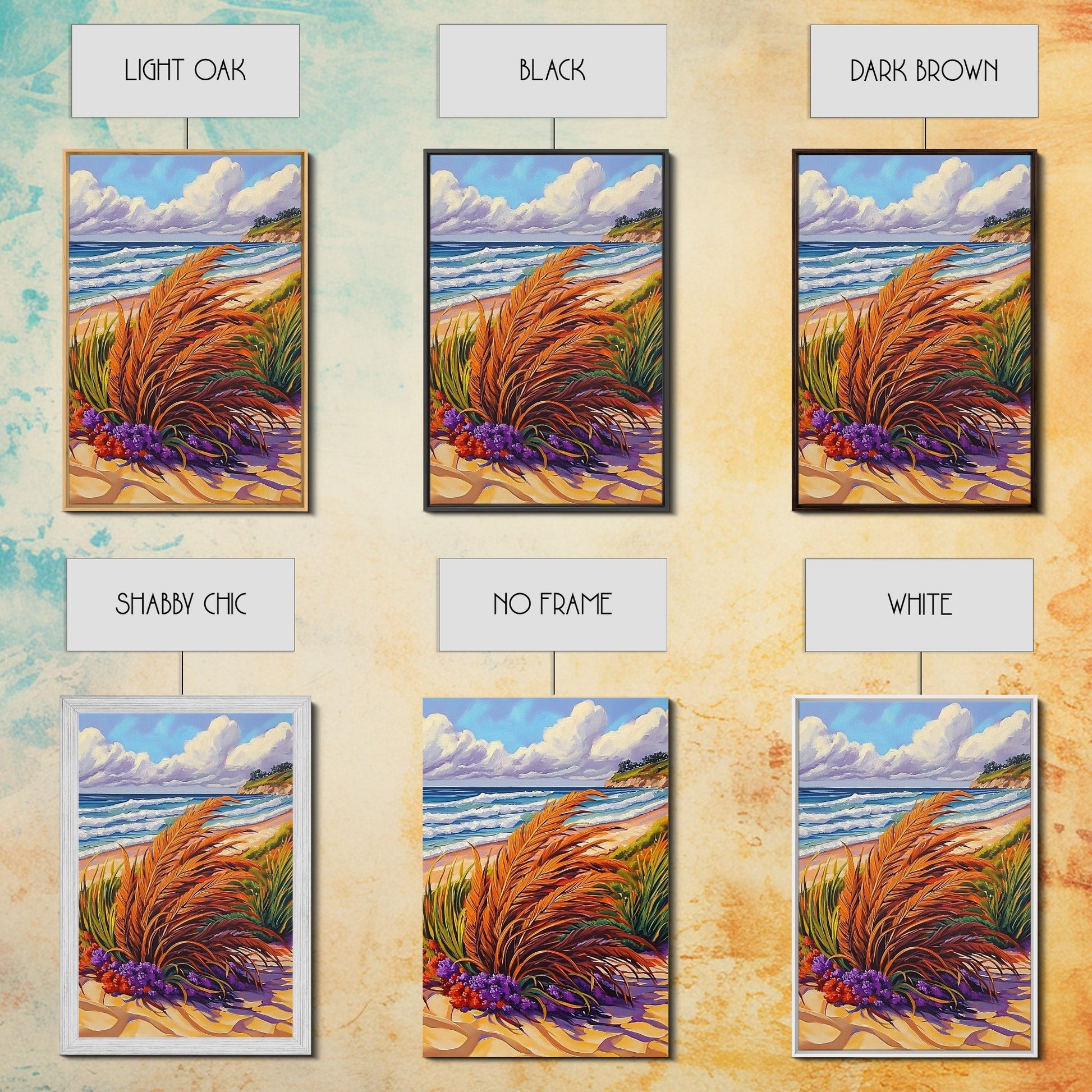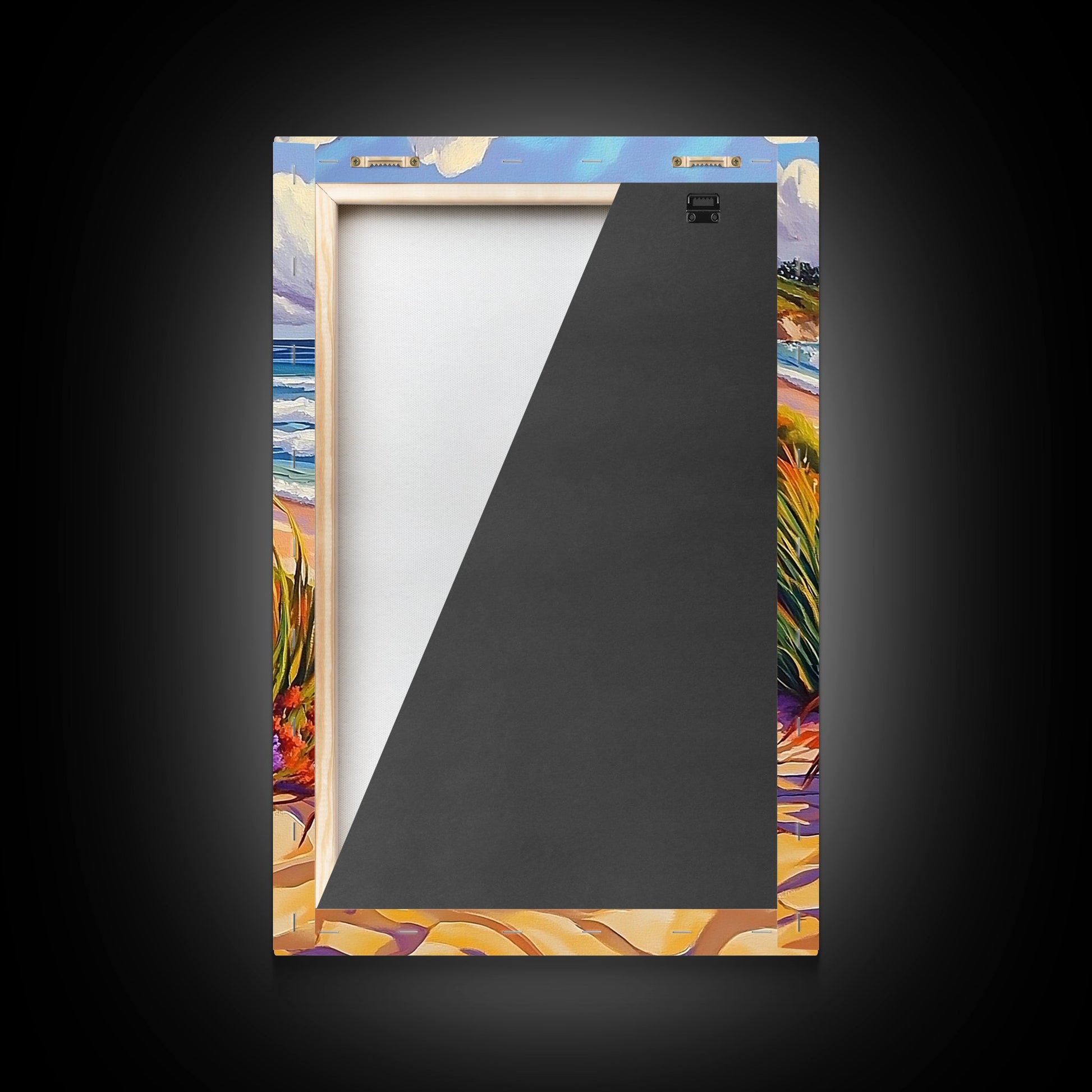 Ocean Dune, Grass, Coastal Beach Landscape Wall Decor, Nature Lover Gift, Living Room Wall Art, Boho Style Framed Canvas Print